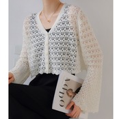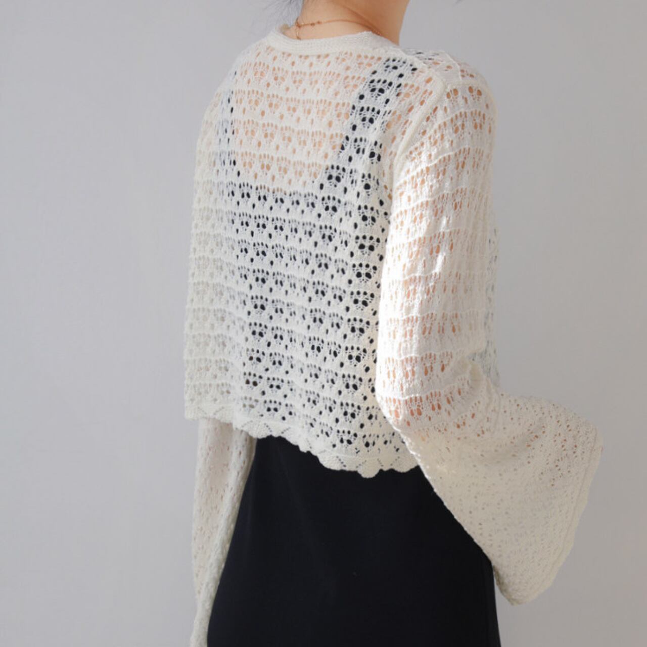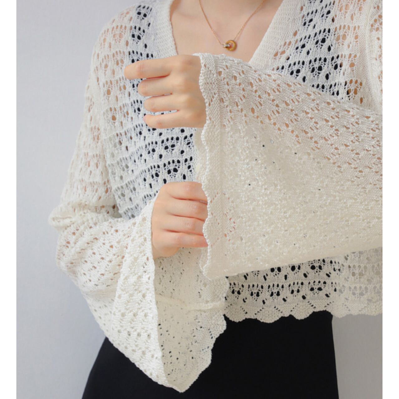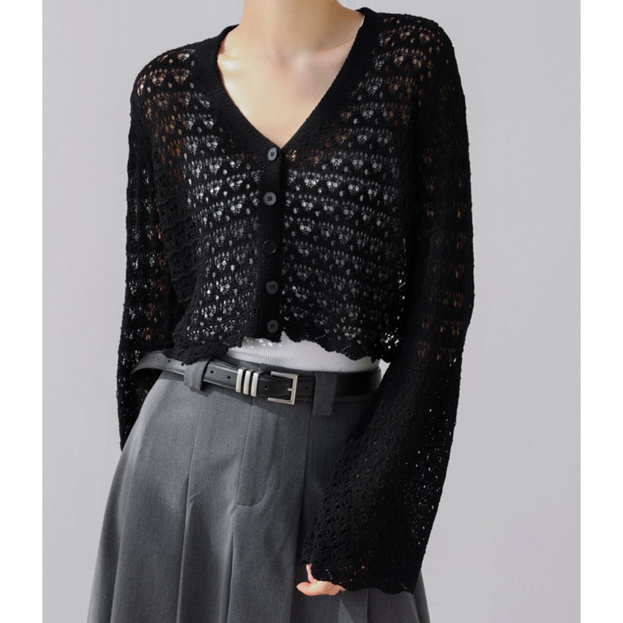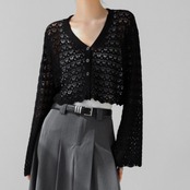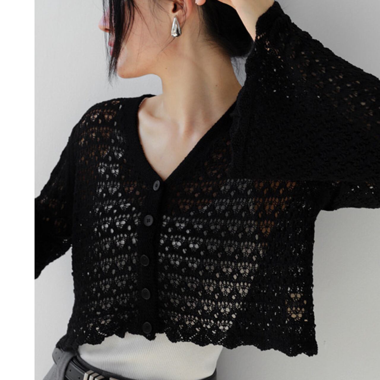クロップド丈のシルエットが魅力的なレースカーディガン。