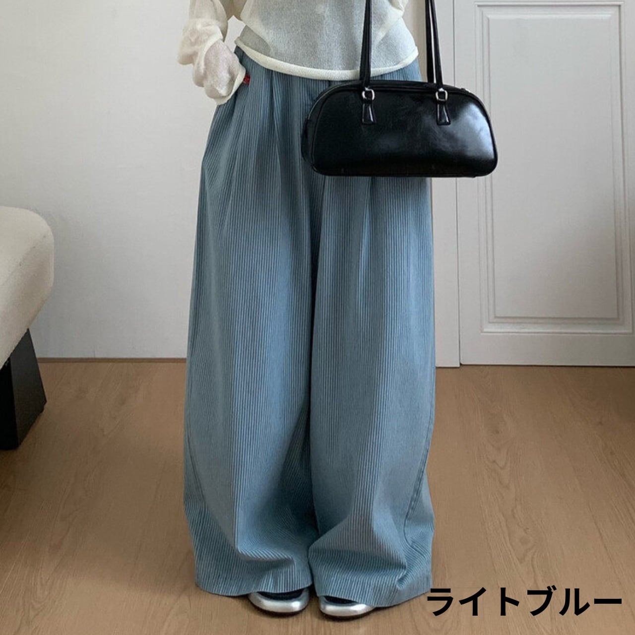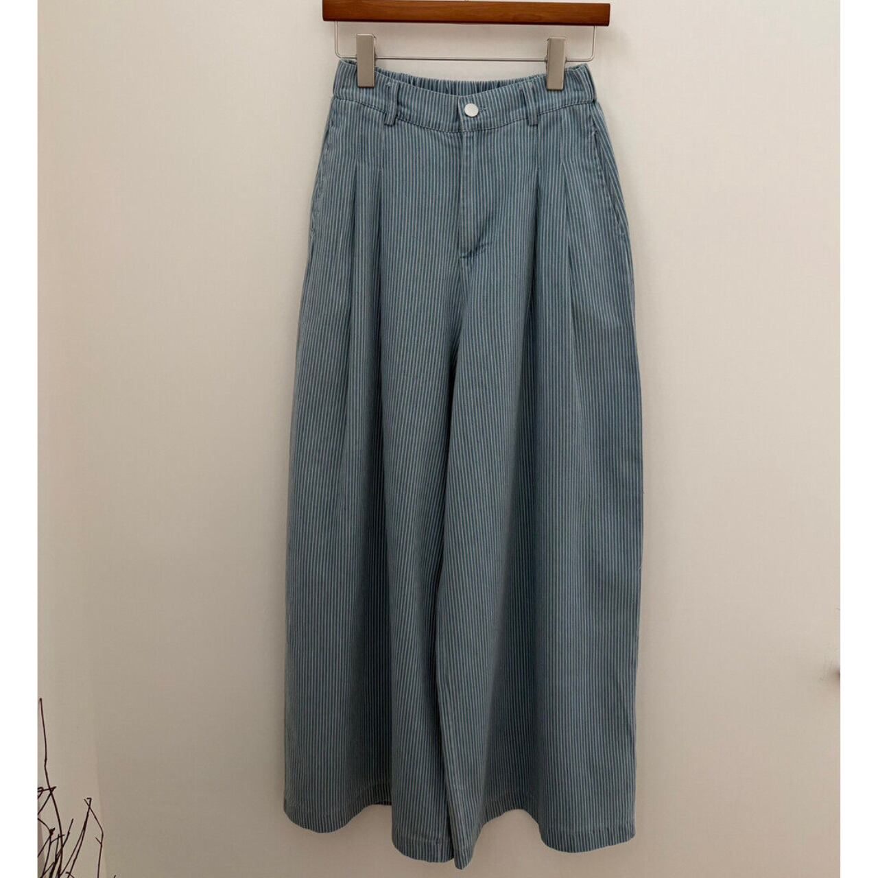 ストライプ柄 ワイドストレート フルレングス パンツ 00159