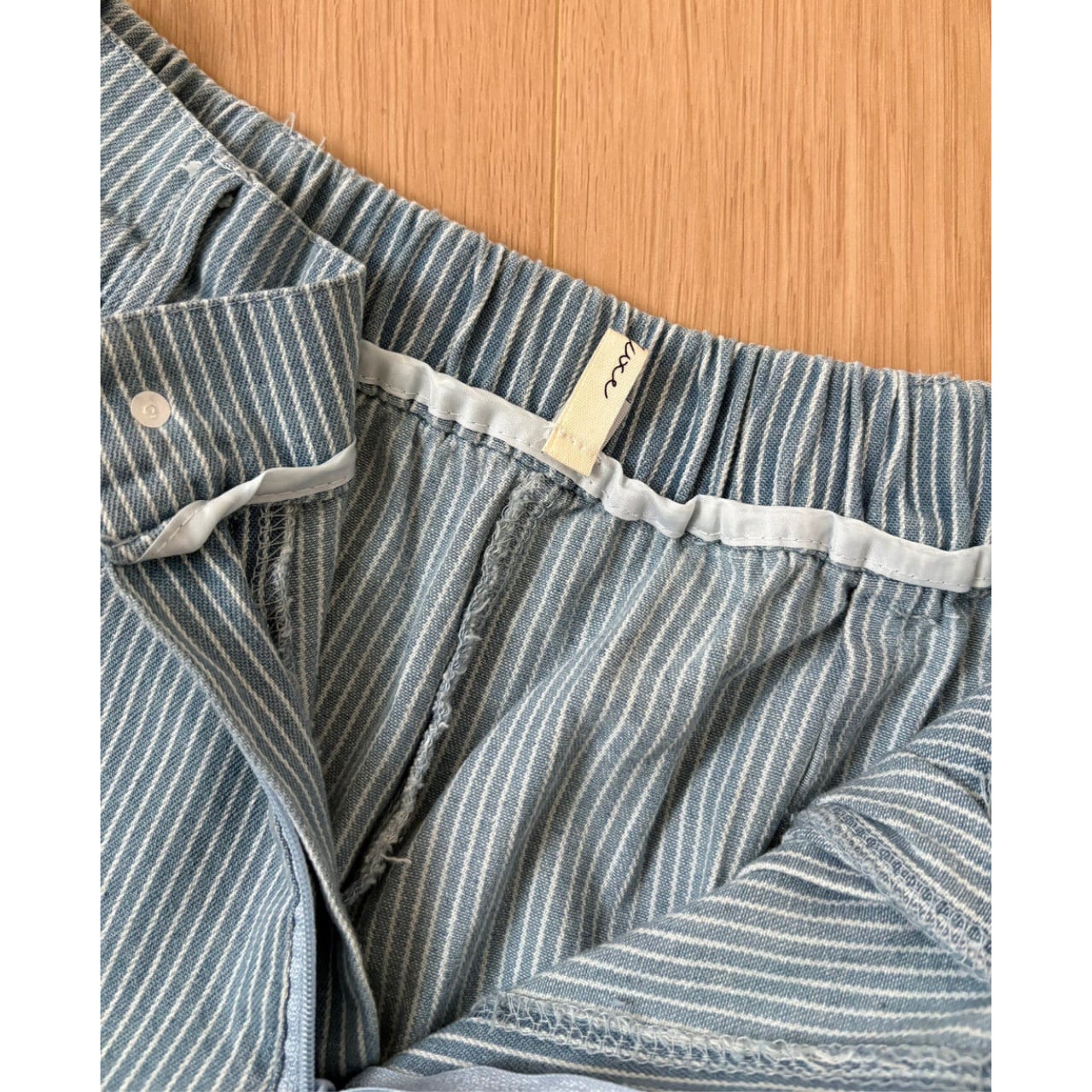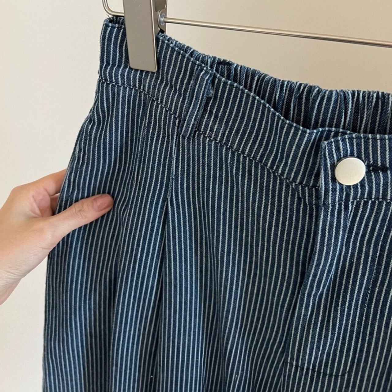ストライプ柄が特徴的なワイドストレートパンツ。