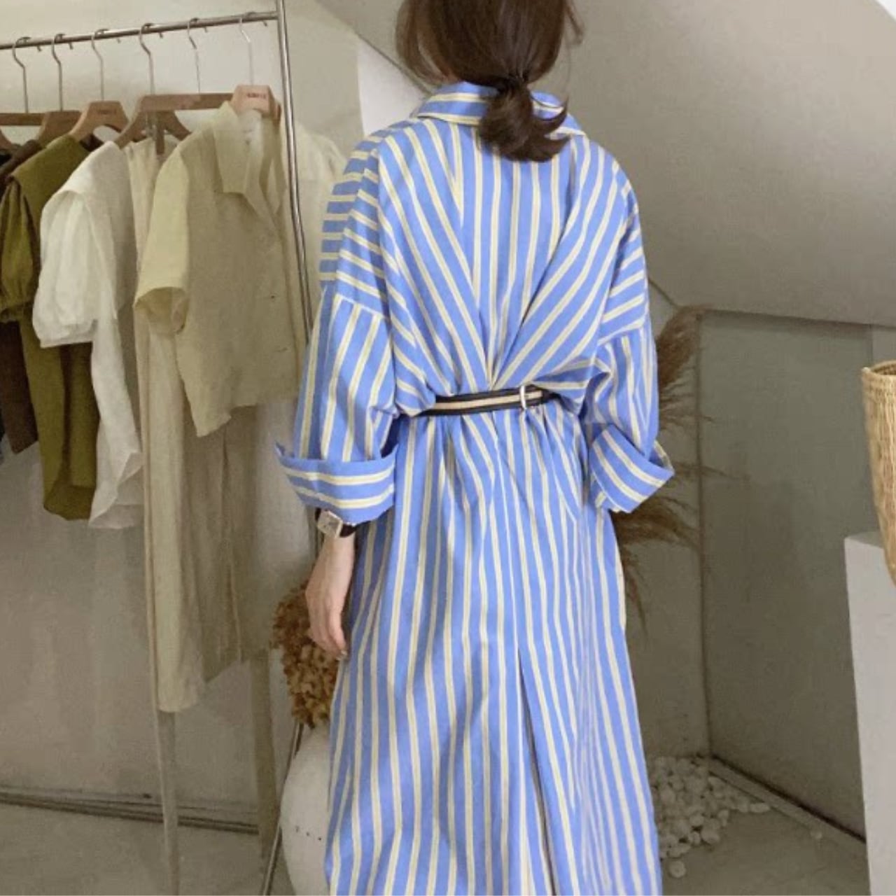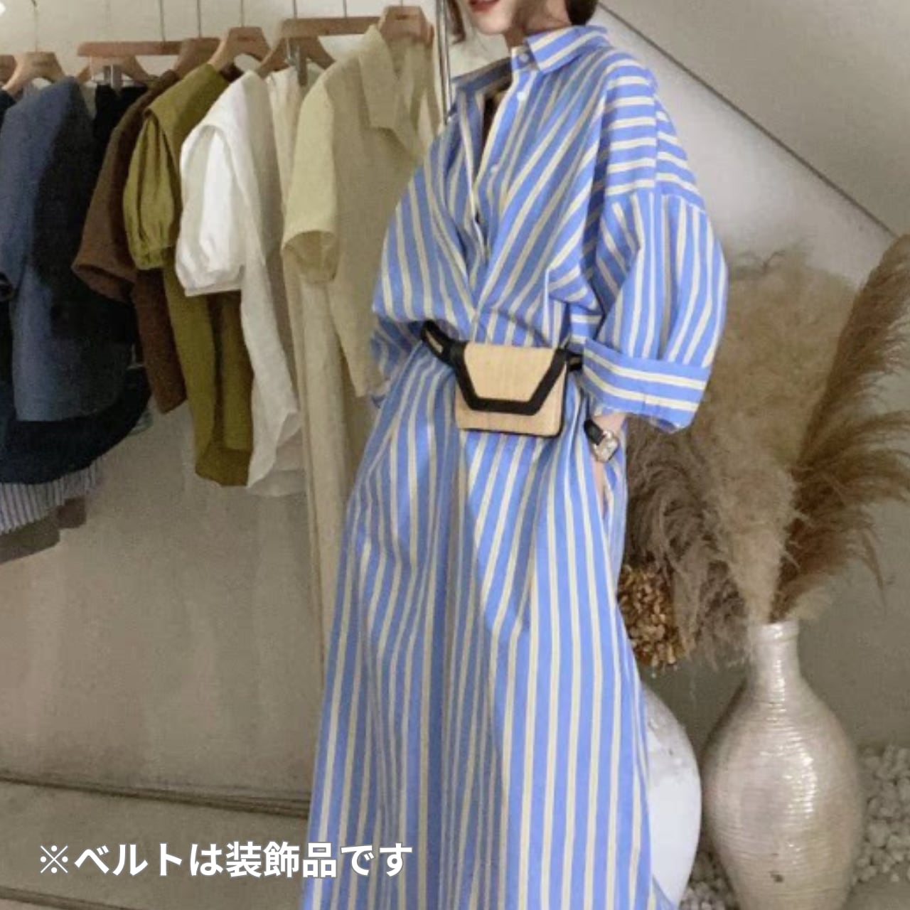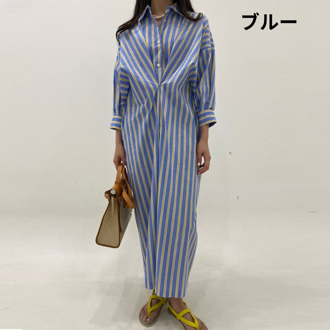 ストライプ柄 長袖 マキシ シャツワンピース 00163