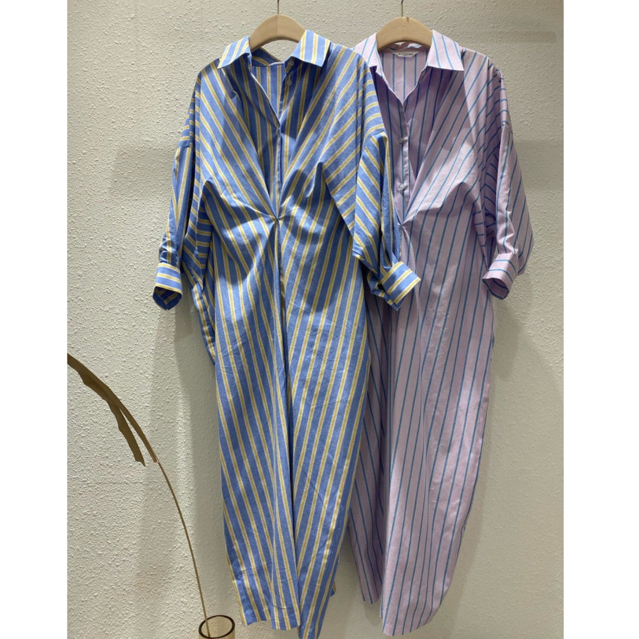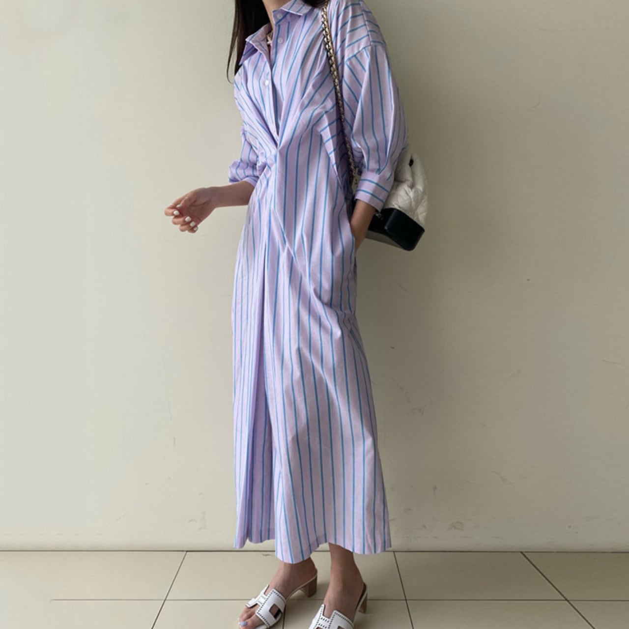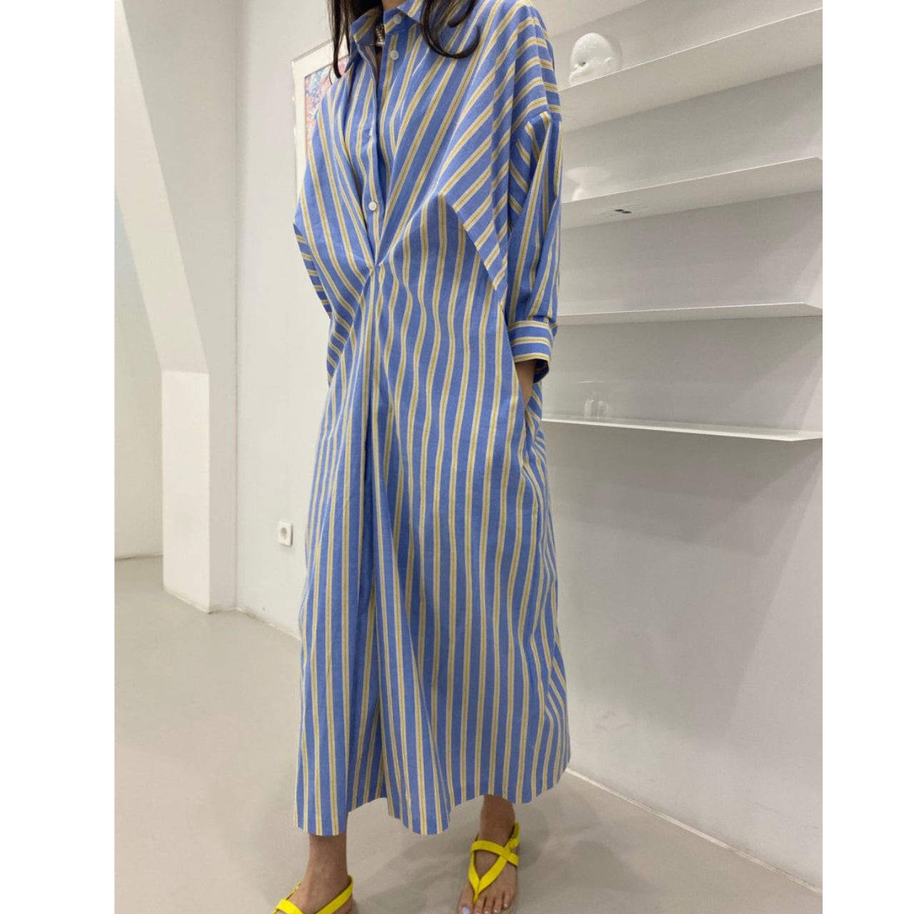 ストライプ柄 長袖 マキシ シャツワンピース 00163