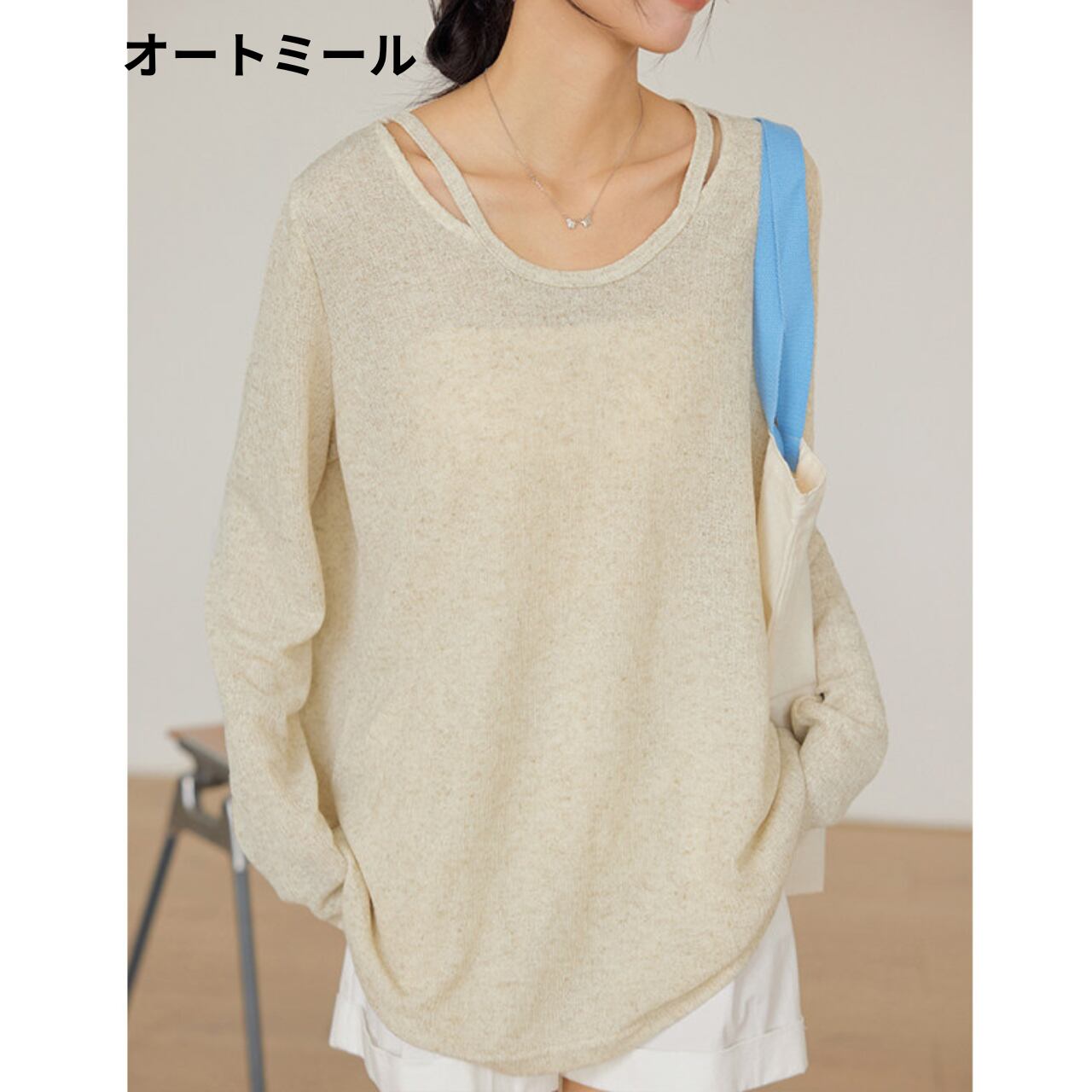 長袖 Vネック ドロップショルダー ニットプルオーバー 00166