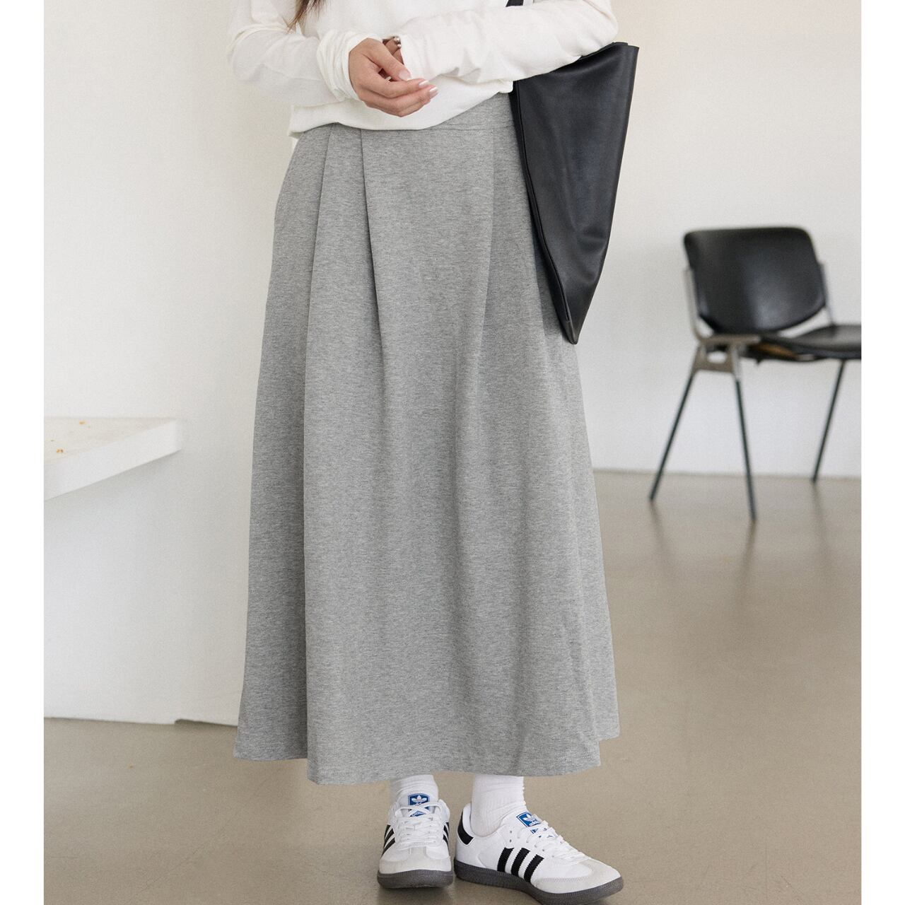 ふんわりと広がるAラインシルエットが、女性らしさを引き立てるミモレ丈スカート。カジュアルな着こなしにも、少し上品なスタイルにも合わせやすいアイテムです。普段使いからちょっとしたお出かけまで、幅広いシーンで活躍します。