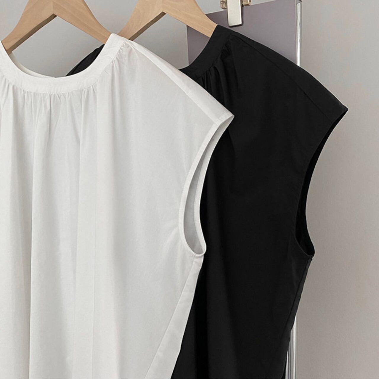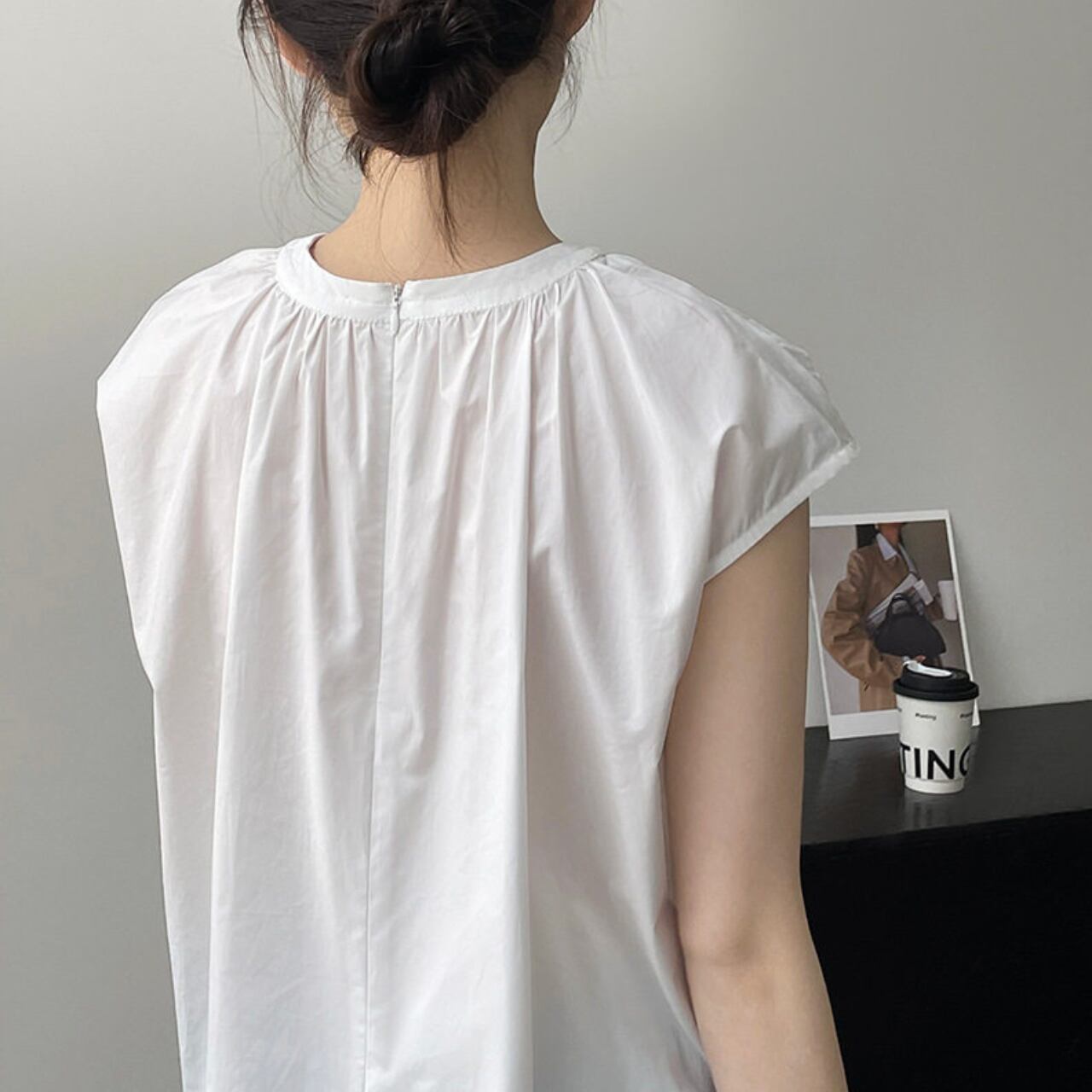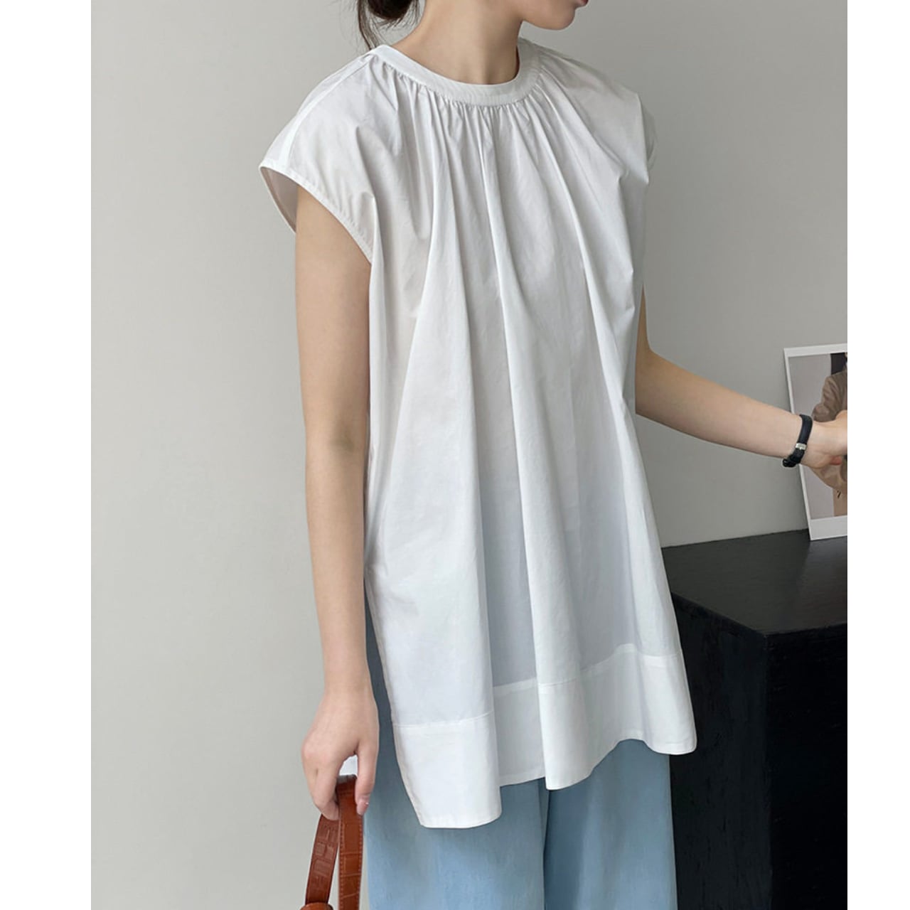 スリットがアクセントの半袖ブラウス。