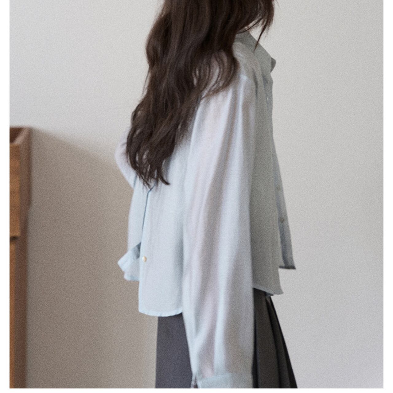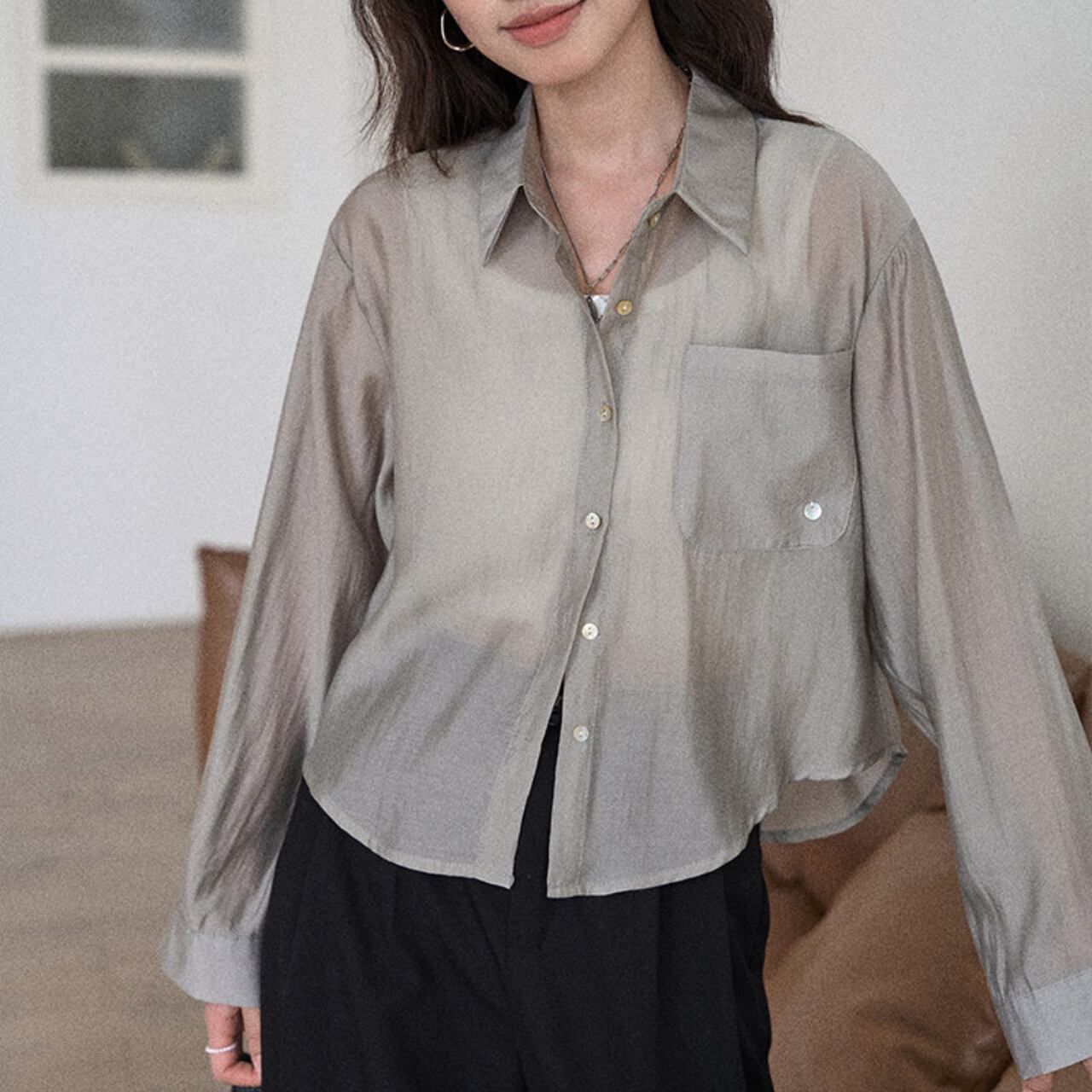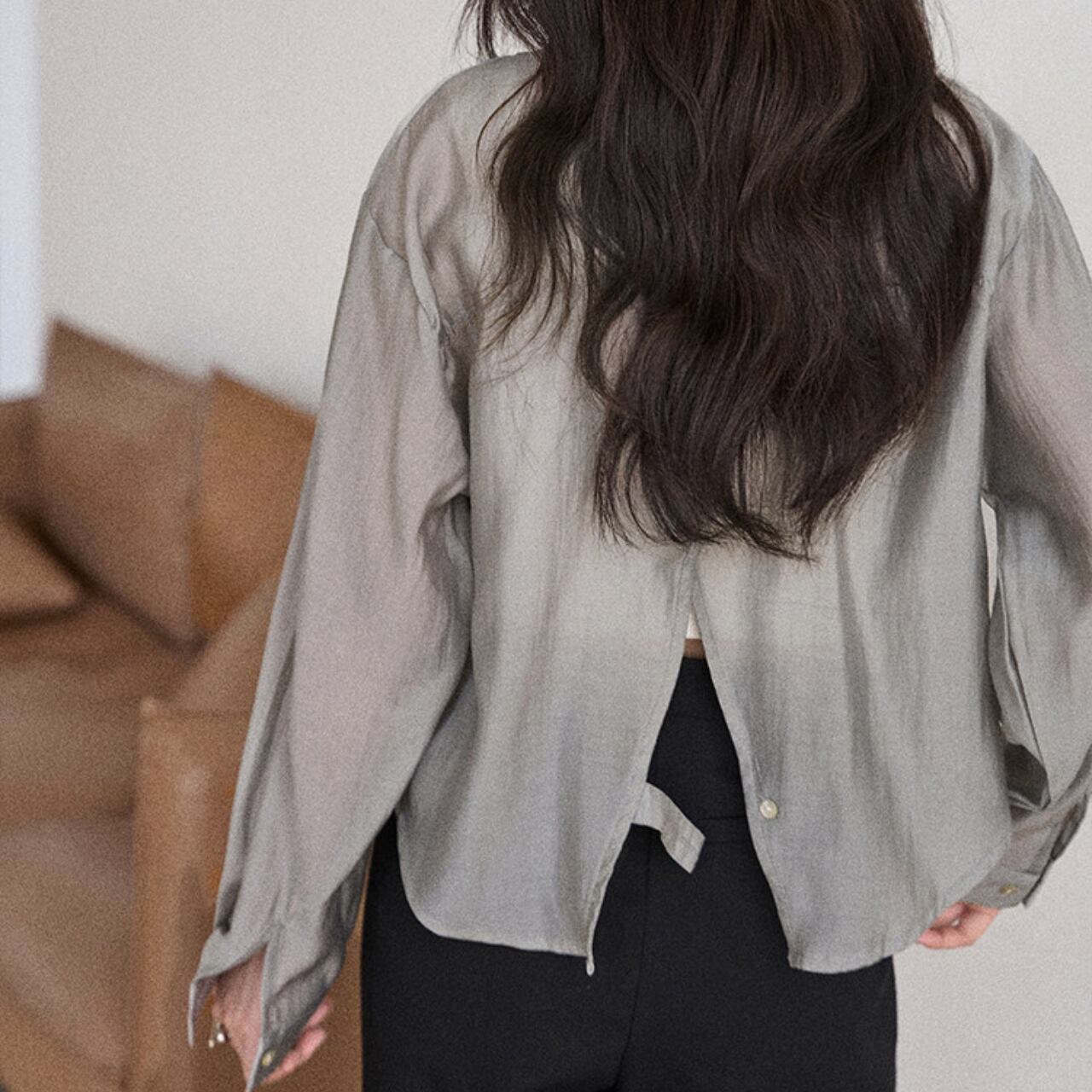 バックボタン 長袖 ヒップ丈 シャツ 00175