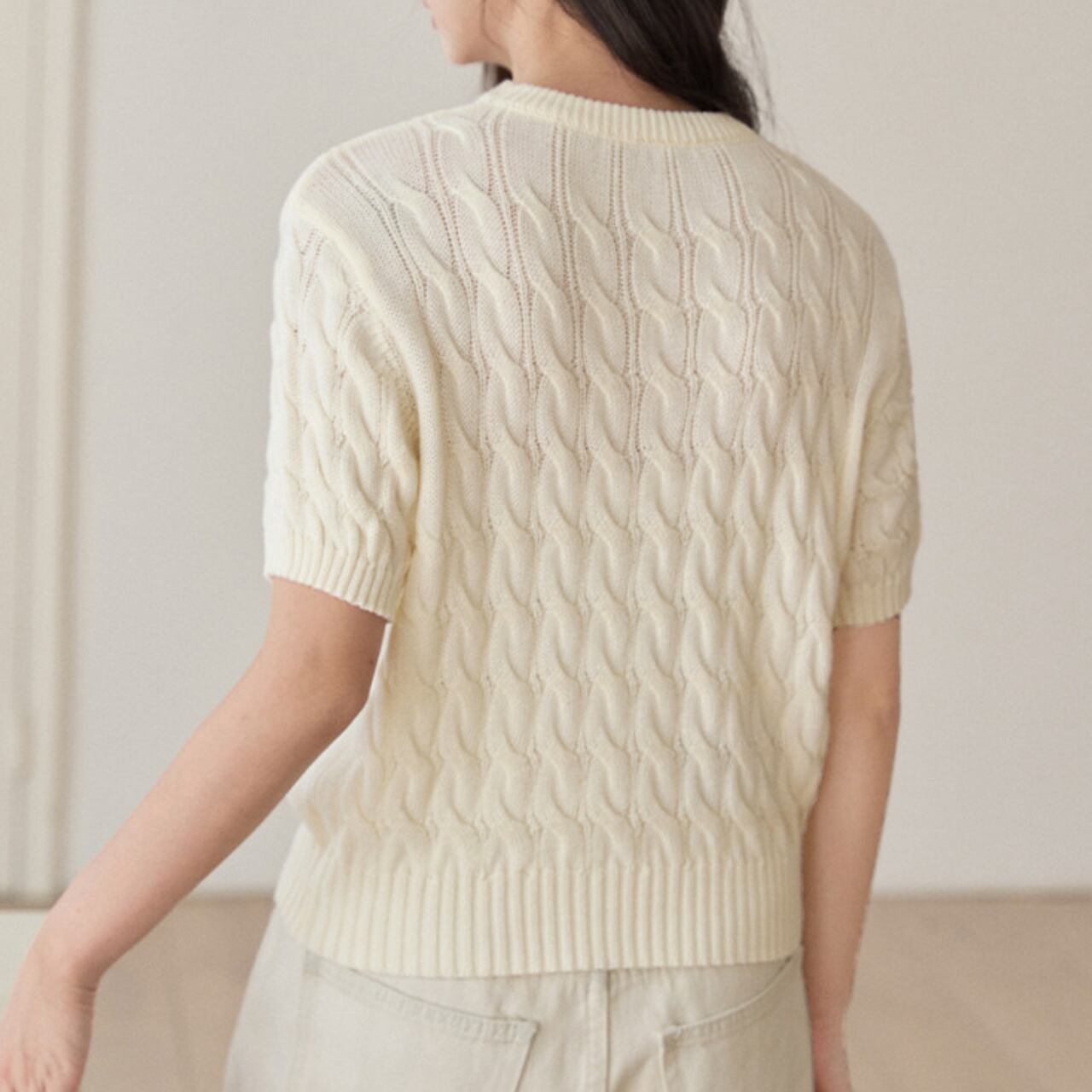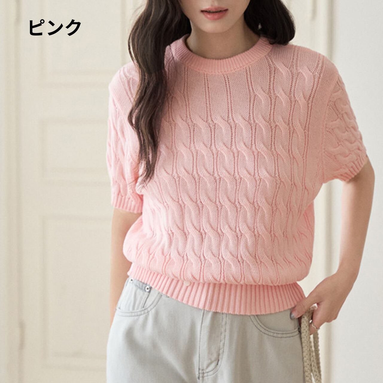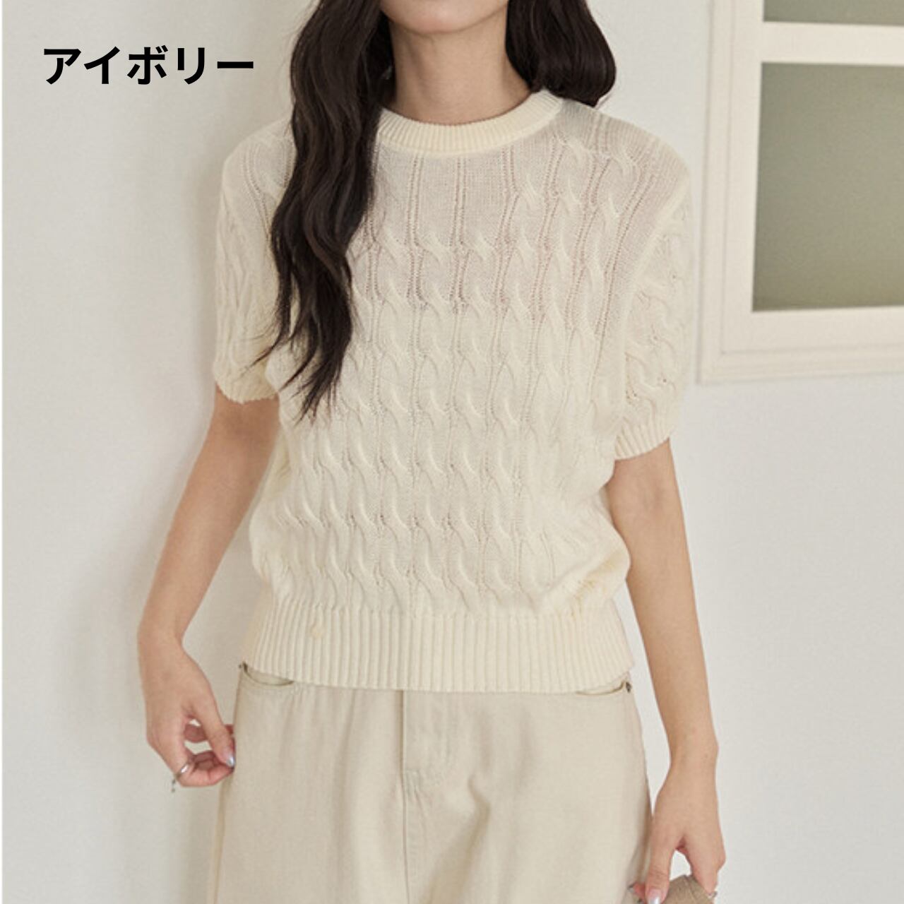 ケーブル編み 半袖 クロップド丈 ニット 00177