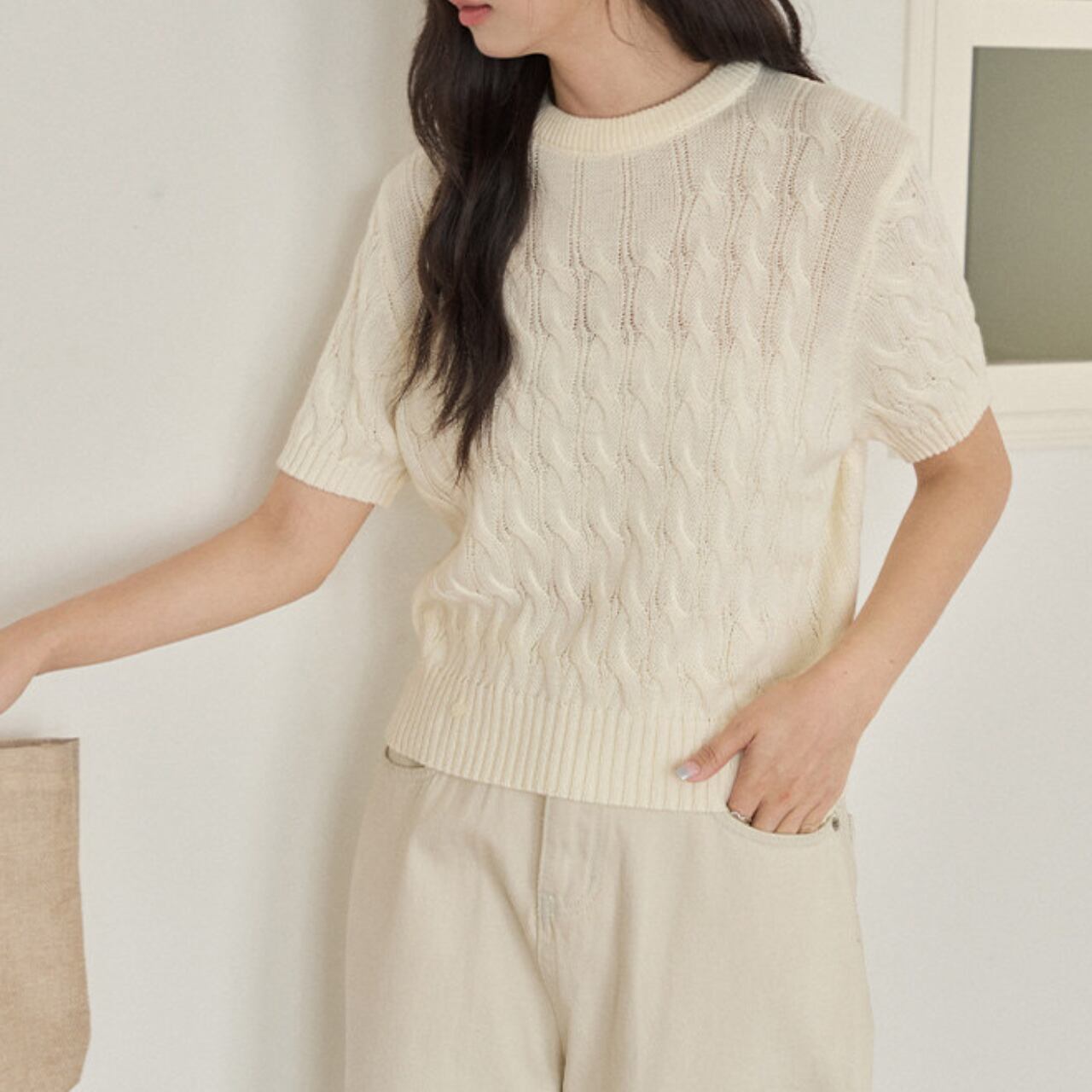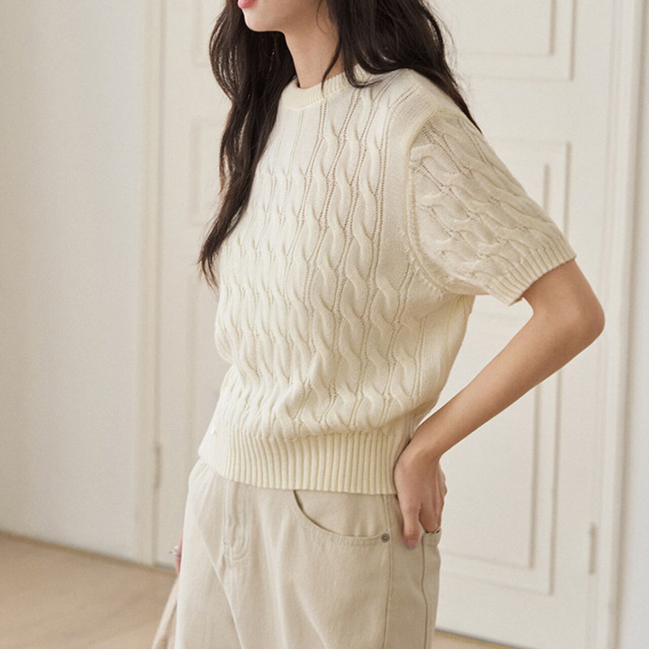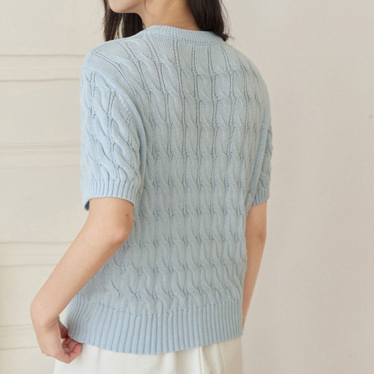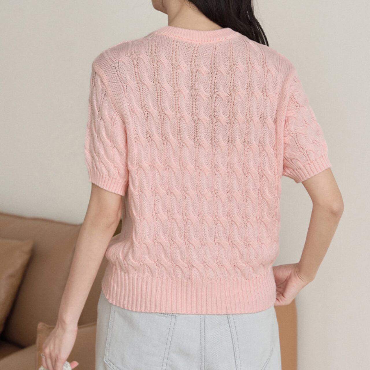 ケーブル編み 半袖 クロップド丈 ニット 00177