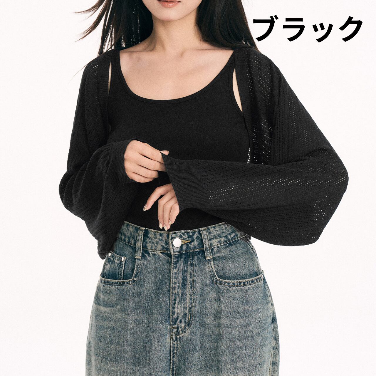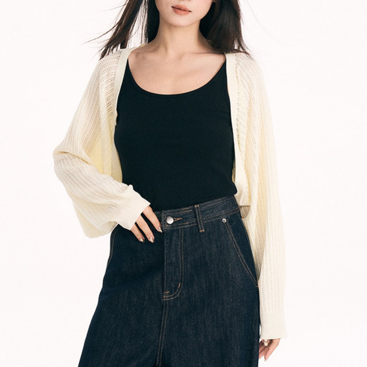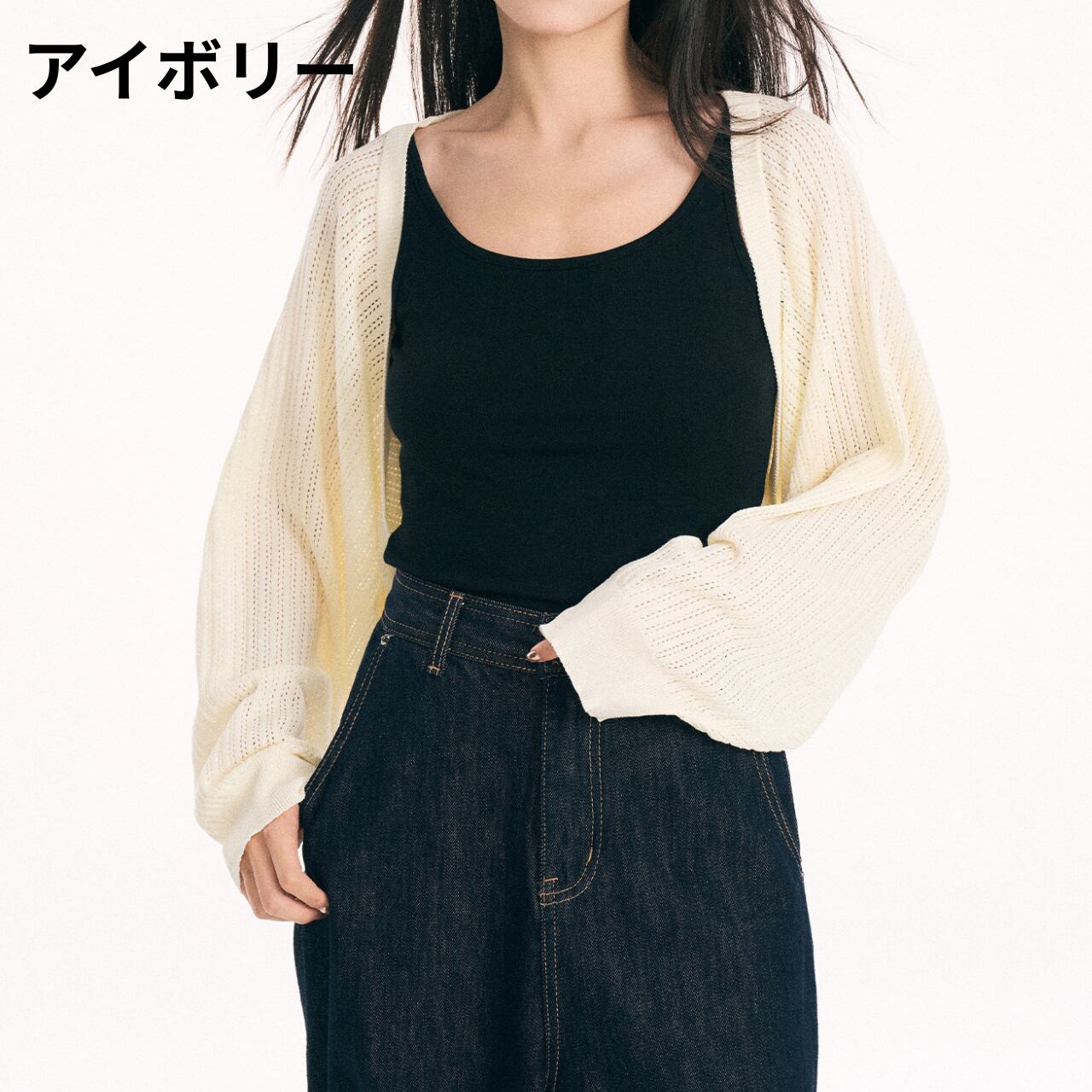 さっと羽織れるオープンフロントの長袖ニットカーディガン。