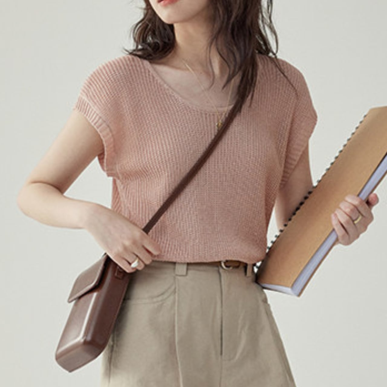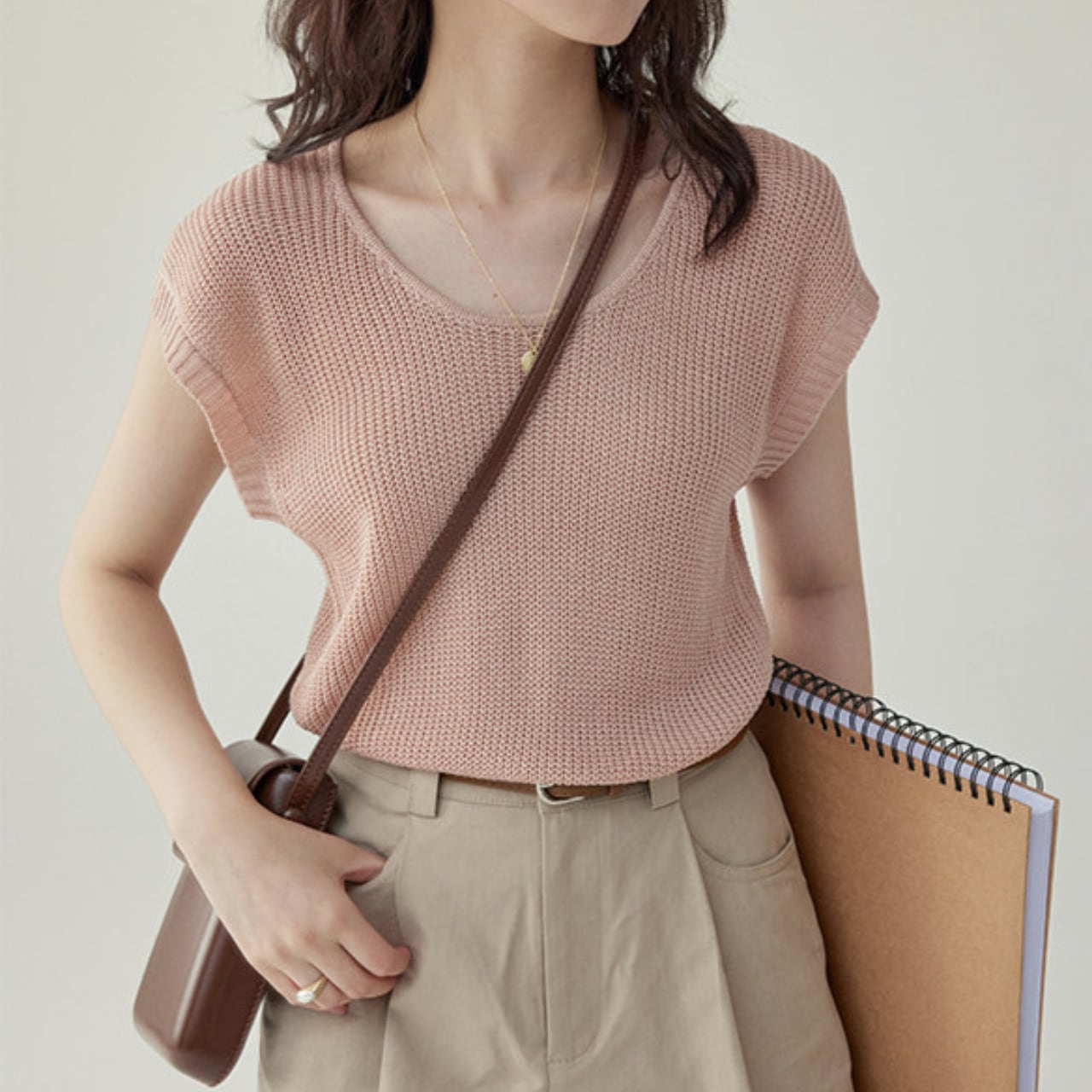 すっきりとしたVネックは、デコルテを綺麗に見せてくれます。