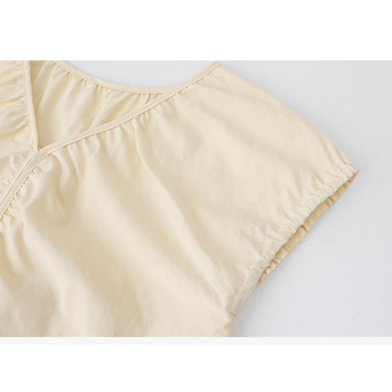 Vネック 半袖 腰丈 ブラウス 00184