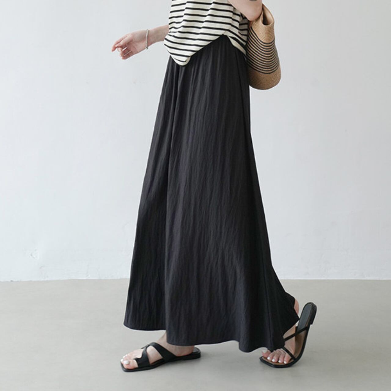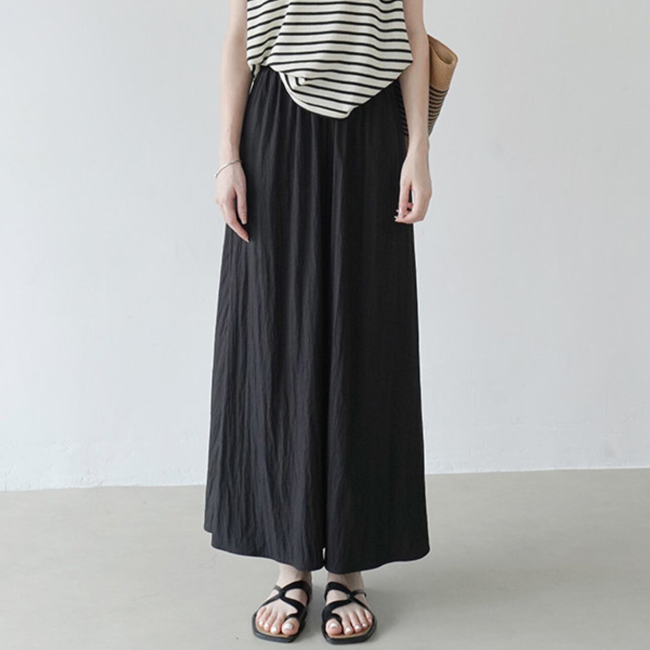 フルレングスでストンと落ちるシルエットが魅力のパンツ。