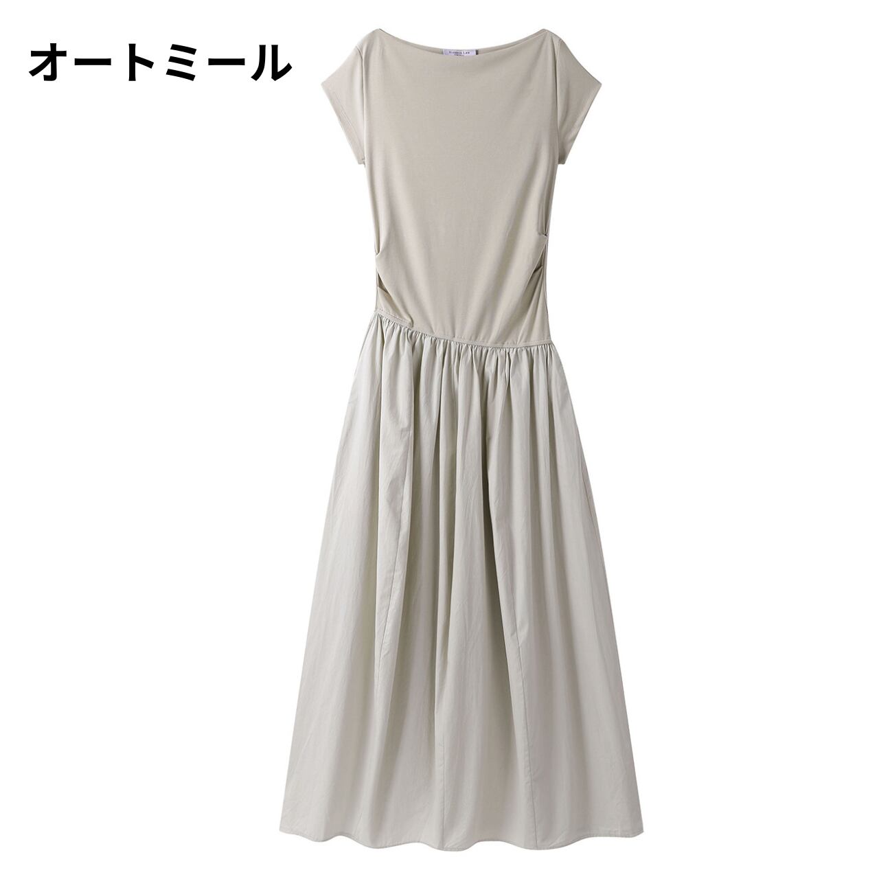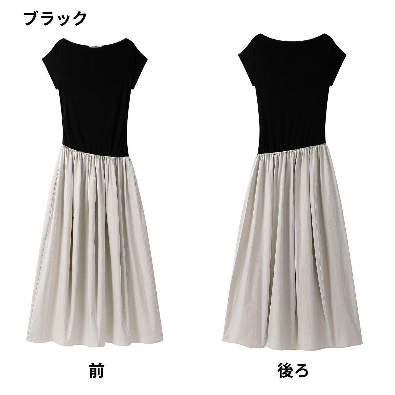 半袖 ミモレ丈 ドッキング ワンピース 00189