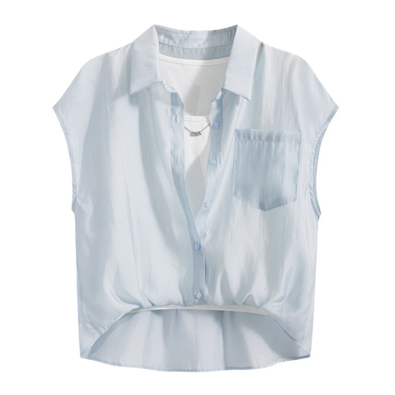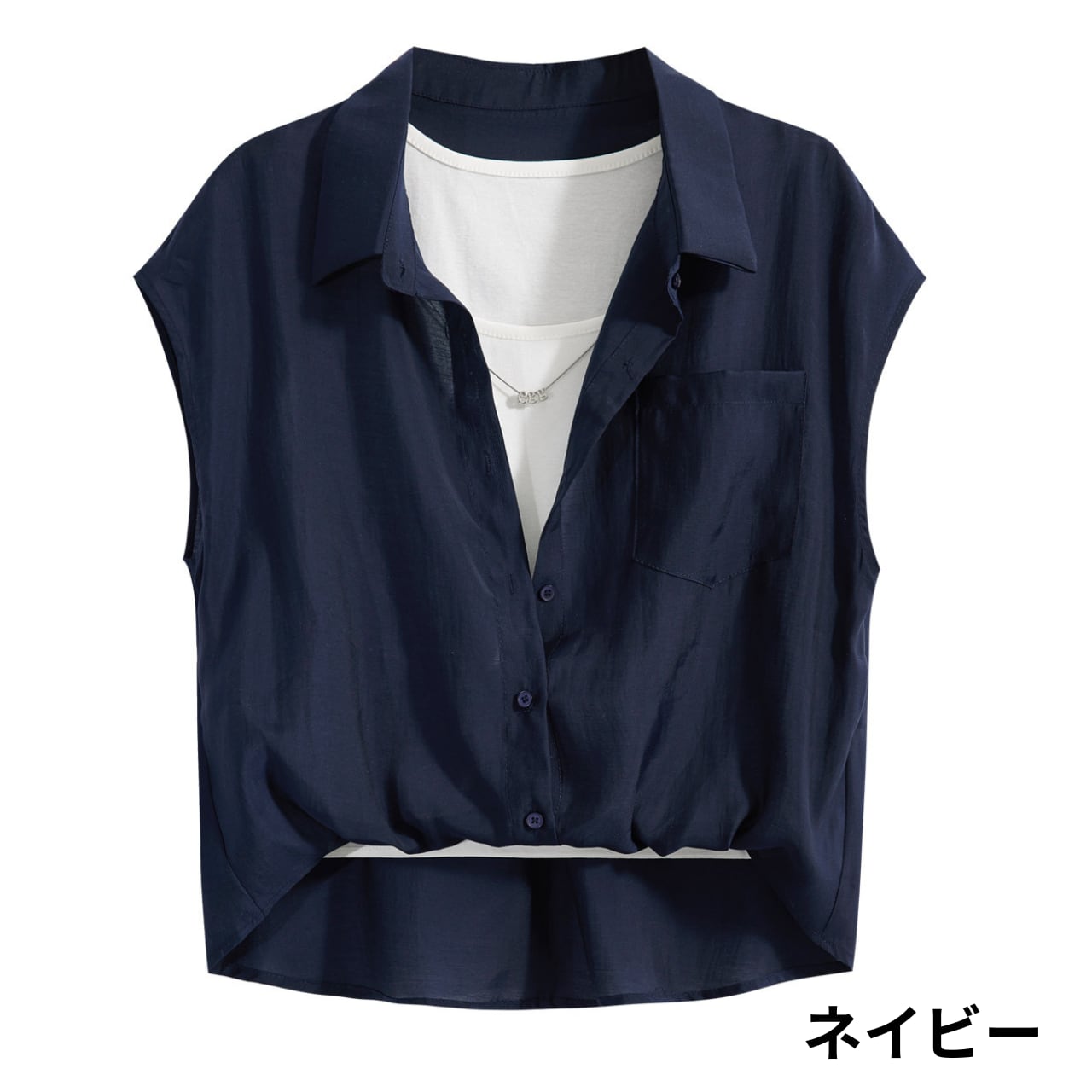ボタンフロント クロップド丈 ノースリーブ シャツ 00198