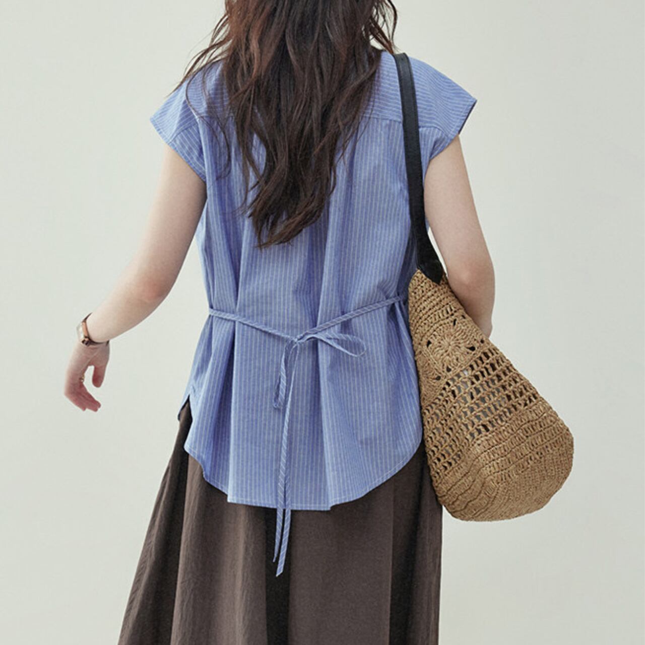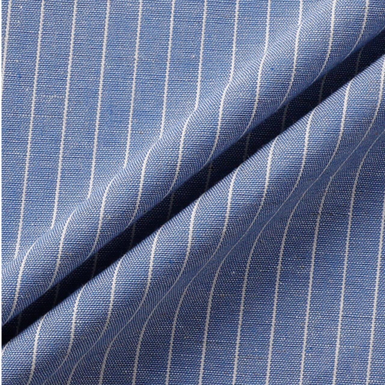 爽やかなブルーストライプは、コーディネートに