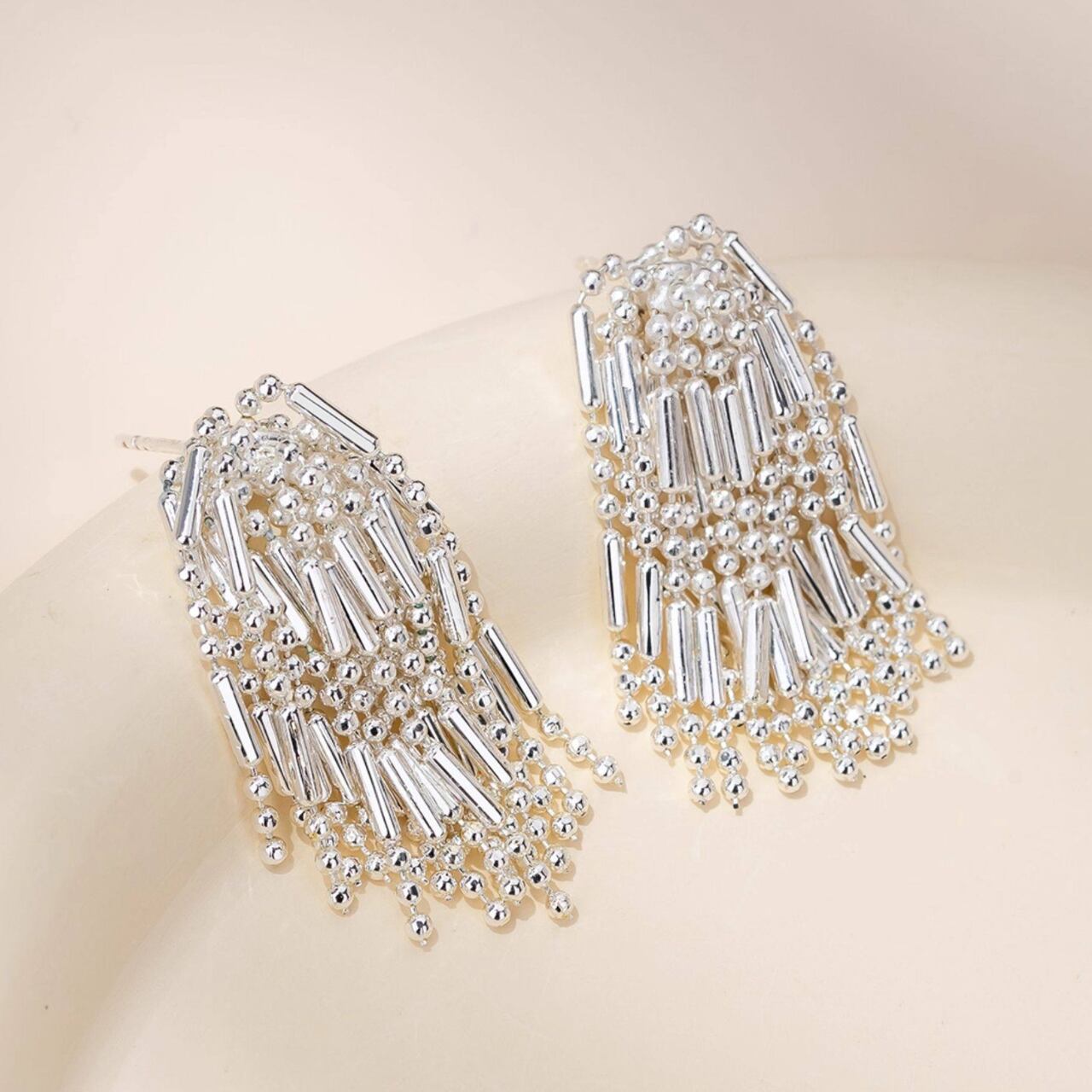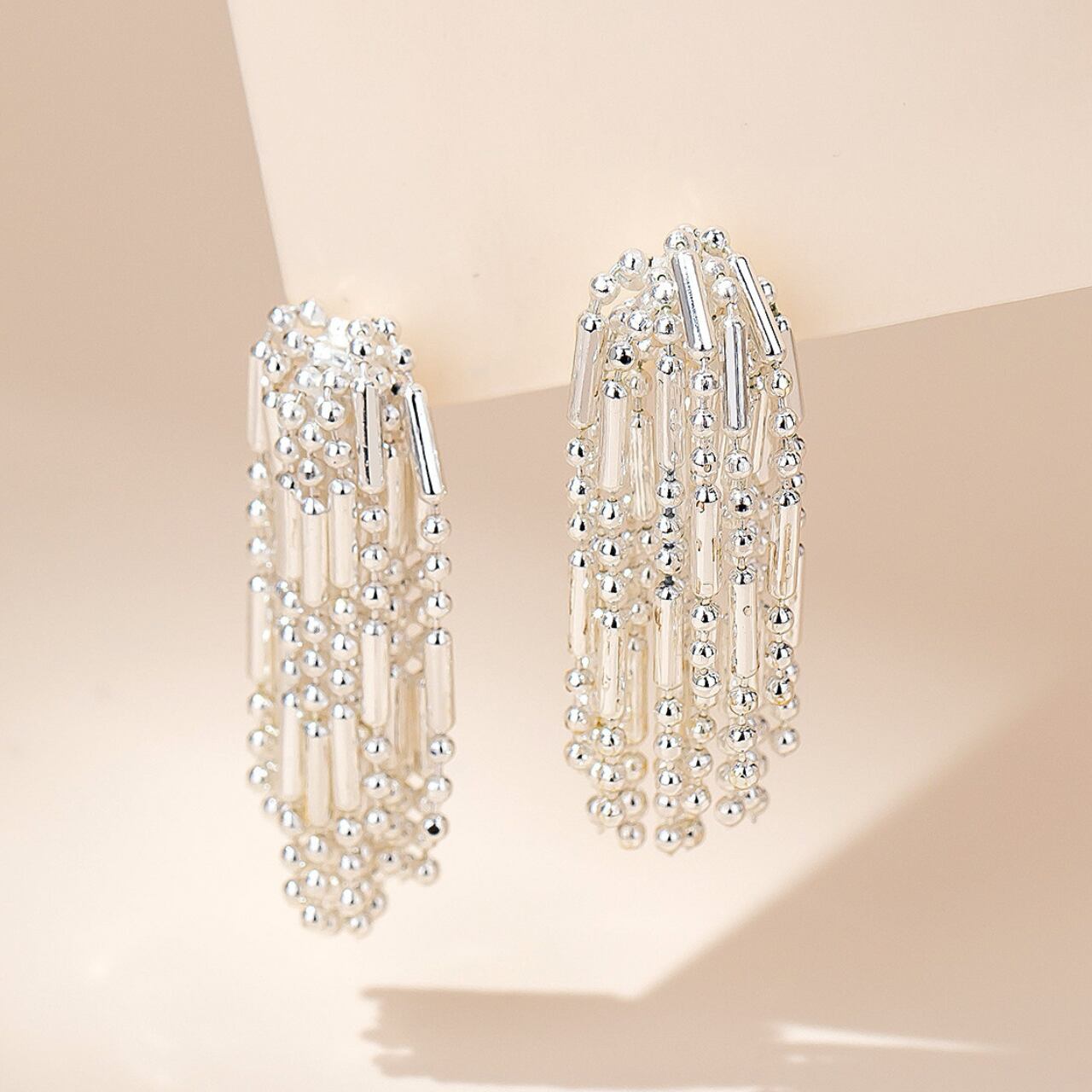 連なるパーツのデザインが特徴のイヤリングです。