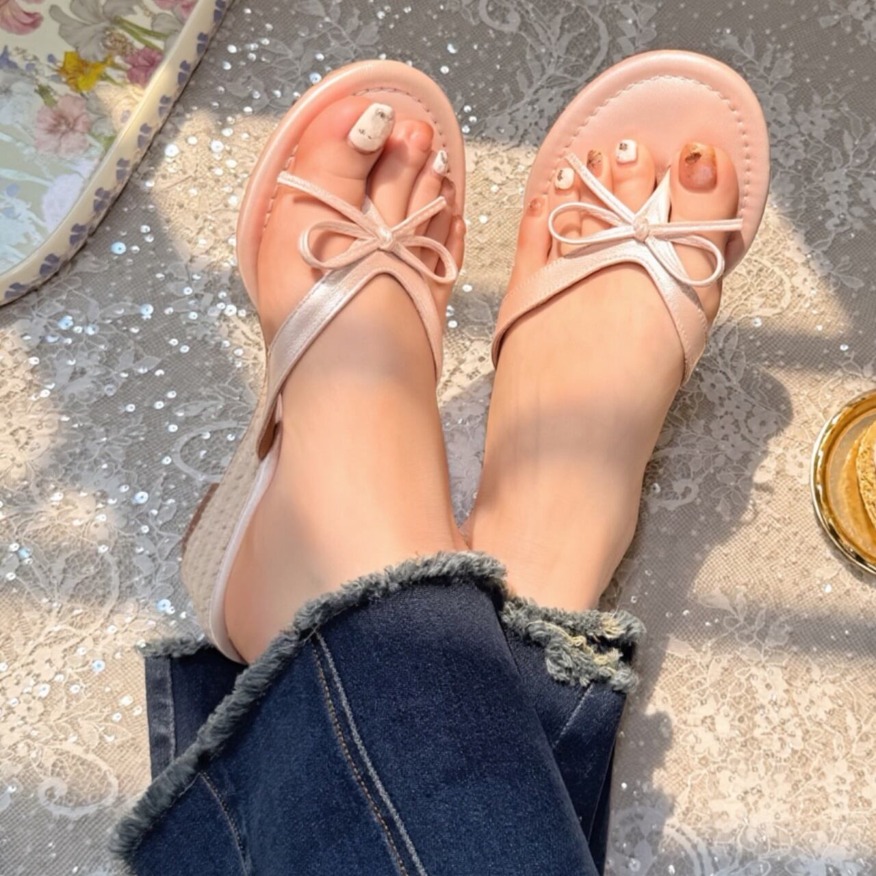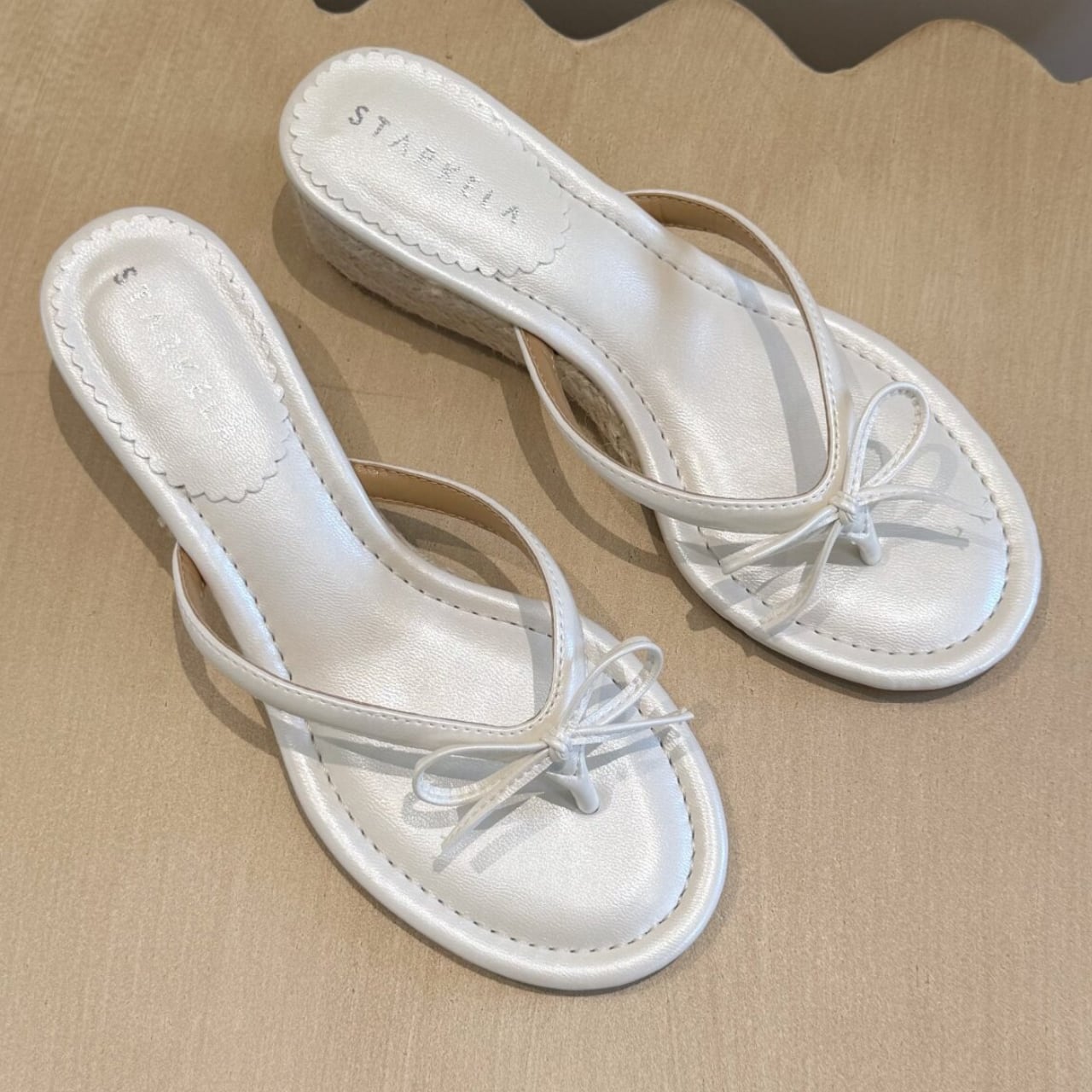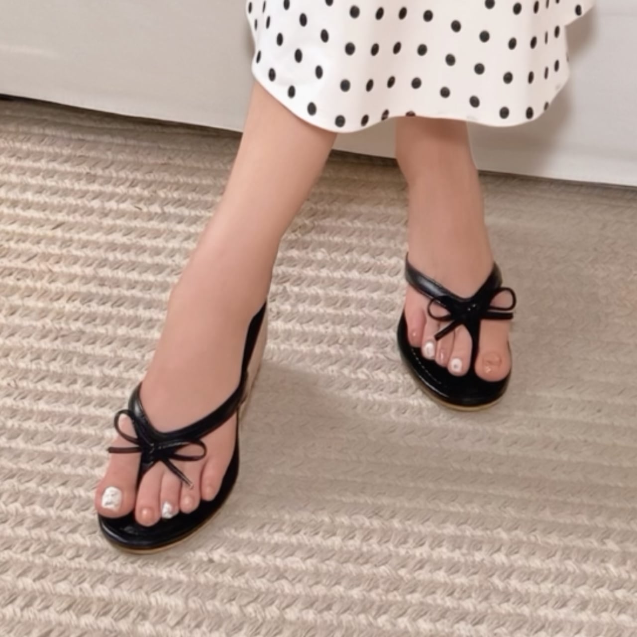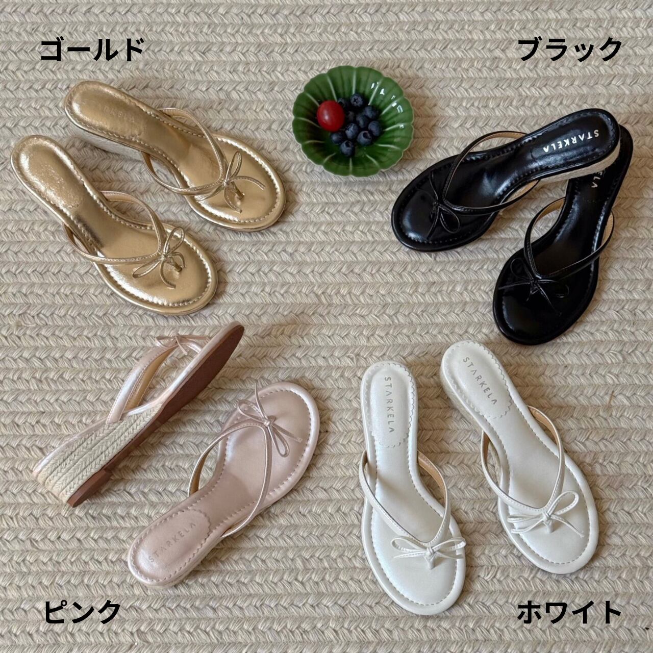 リボンモチーフ オープントゥ ウエッジソール トングサンダル 00217