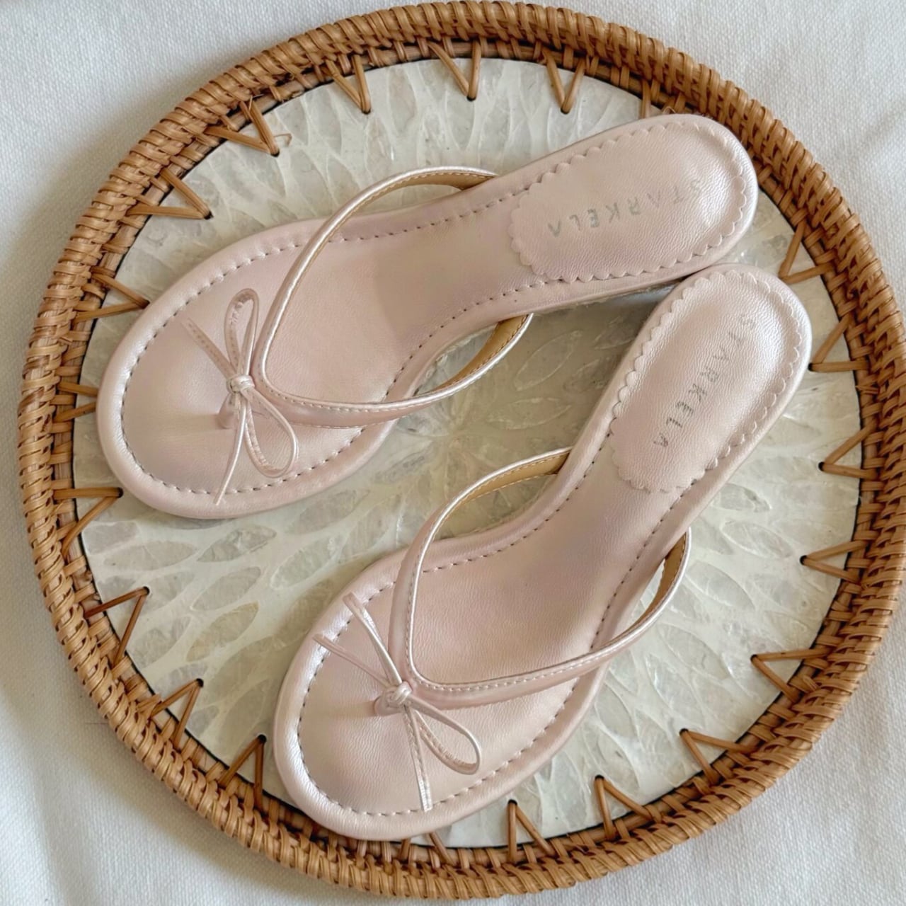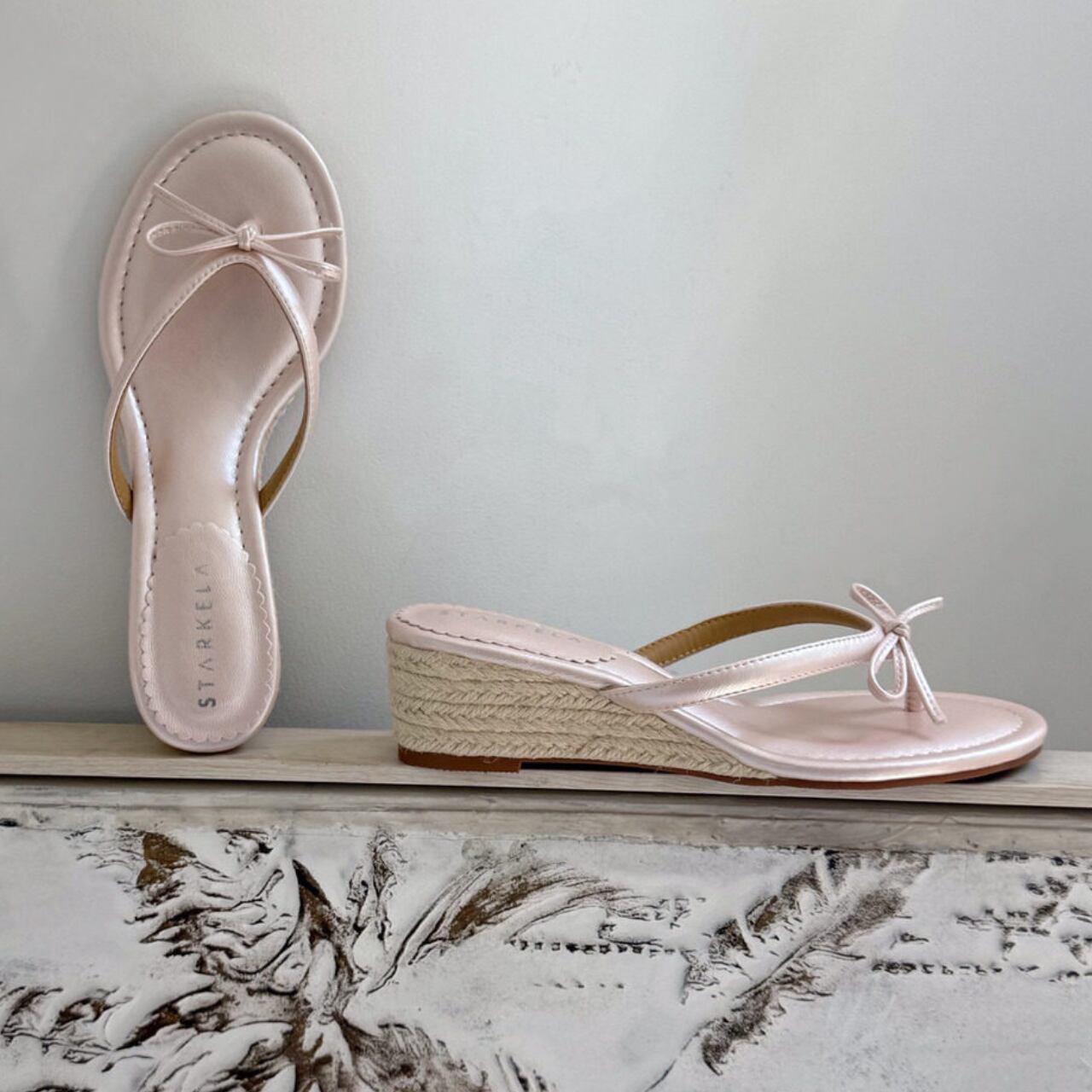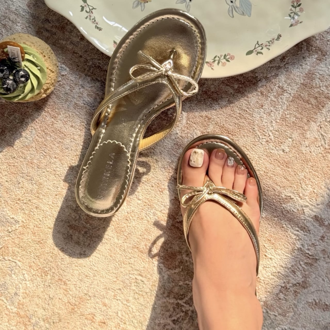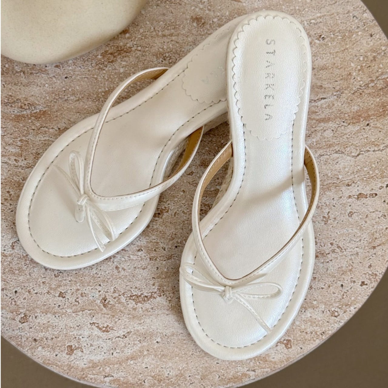 リボンモチーフ オープントゥ ウエッジソール トングサンダル 00217