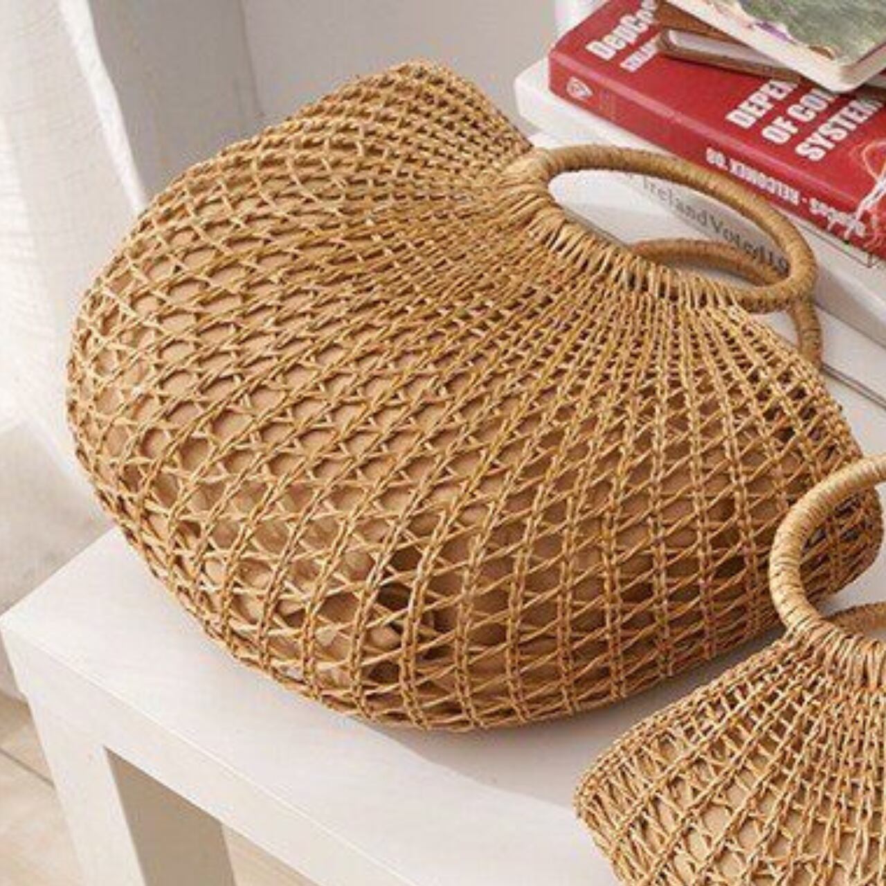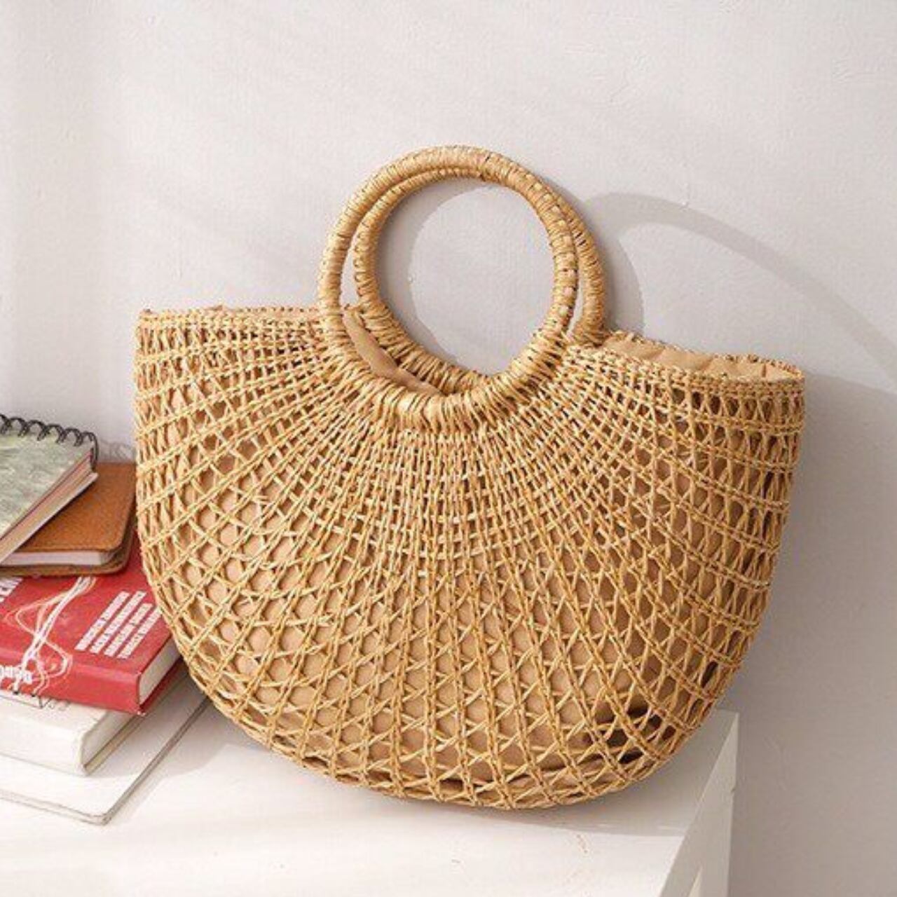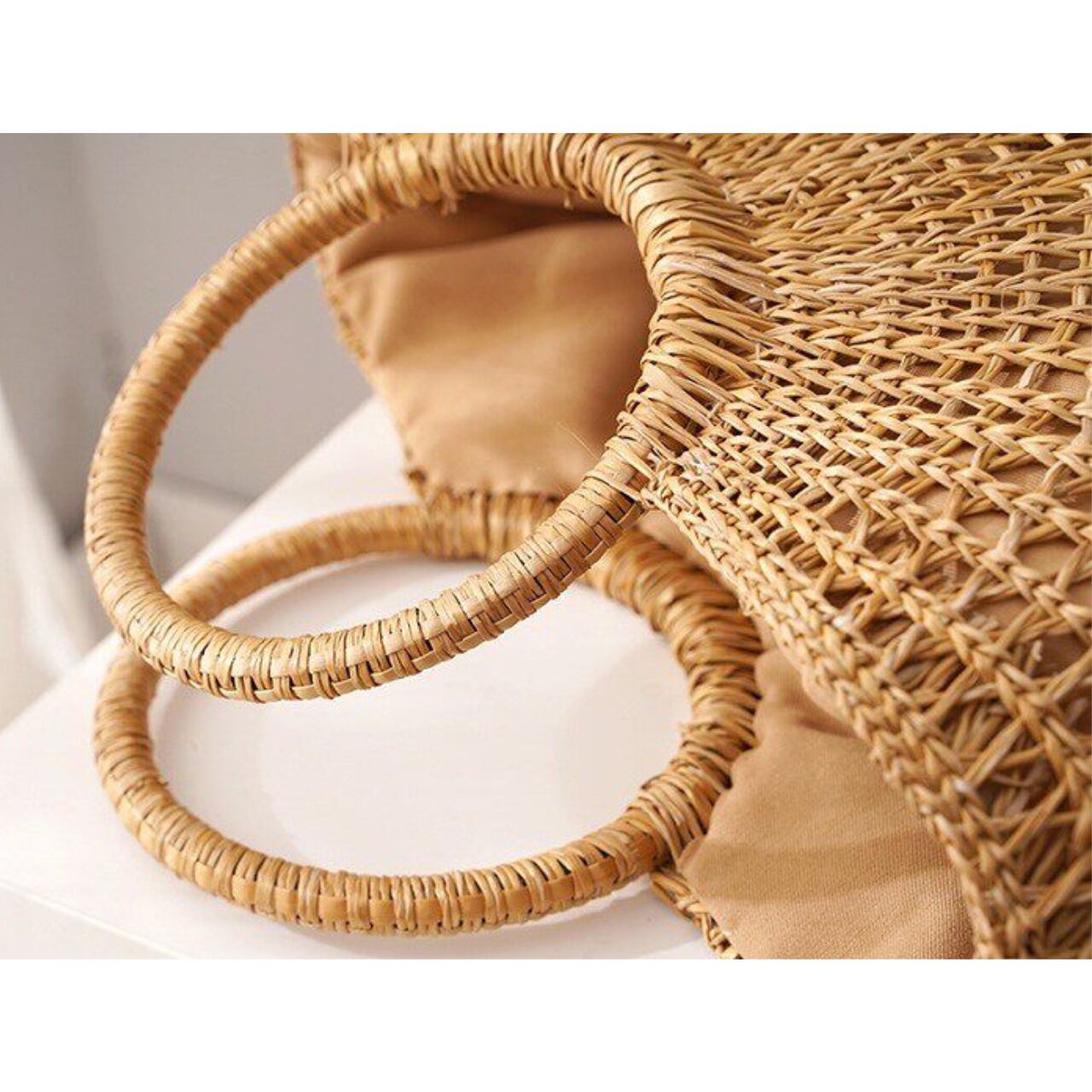 メッシュ編み 円形ハンドル バケット型 ハンドバッグ 00218
