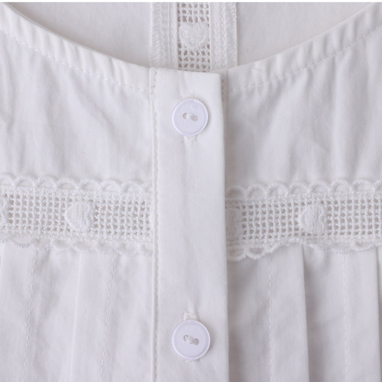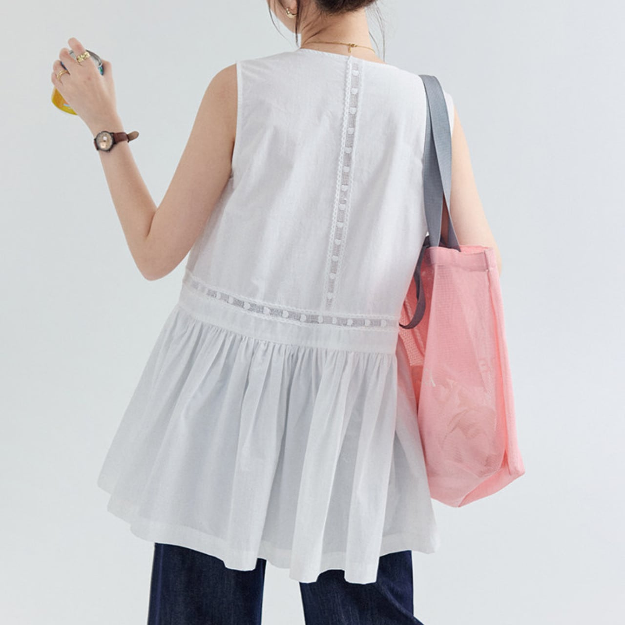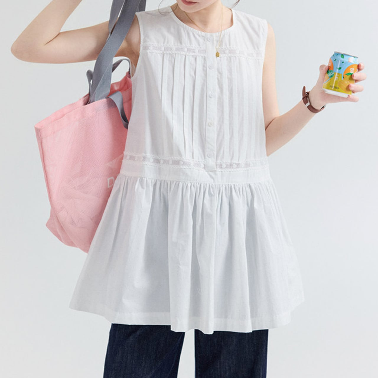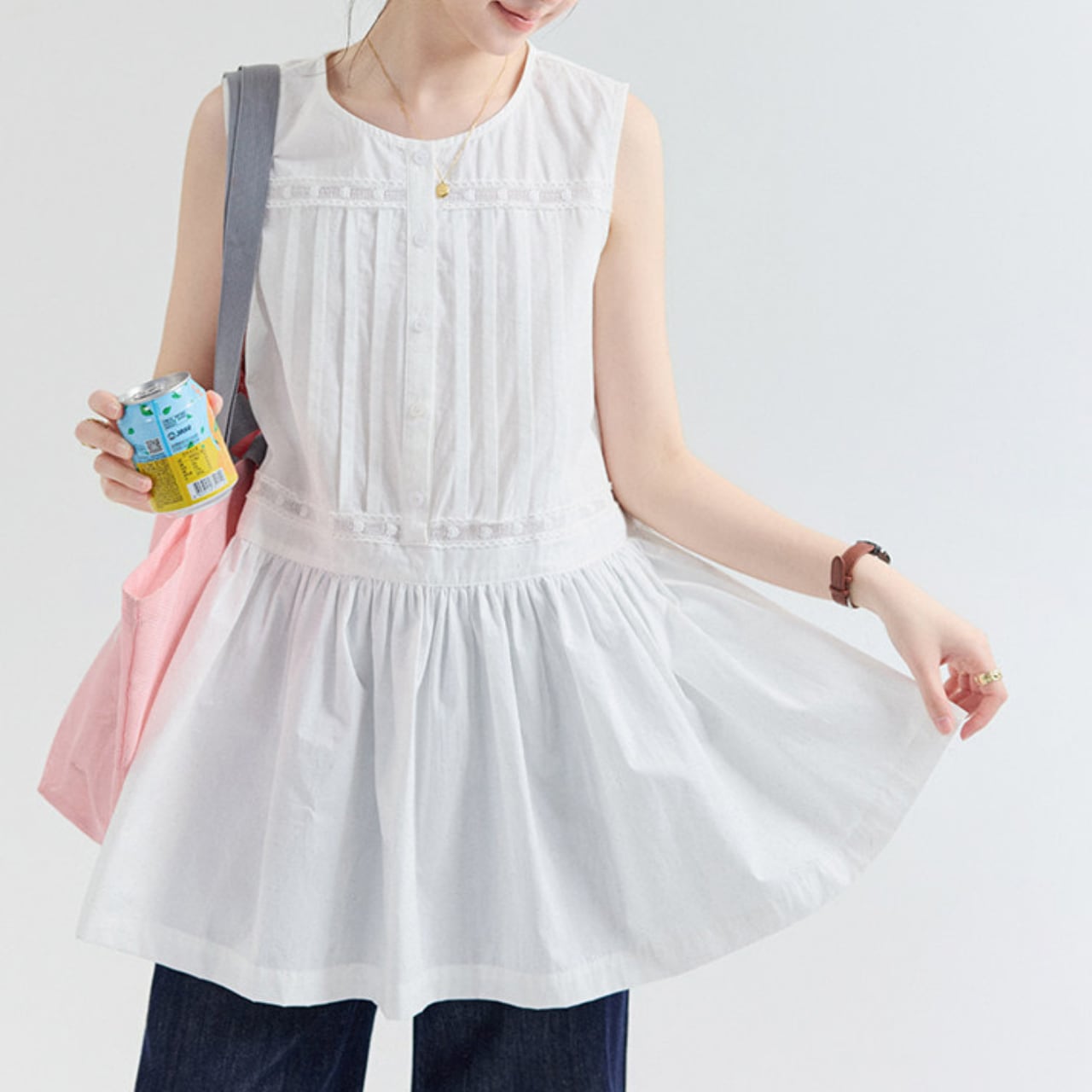 ボタンフロント ピンタック レース フレア ブラウス 00219